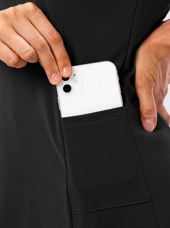 Das Elina Ärmellose Tennis- und Sportkleid in Schwarz kombiniert Stil, Funktionalität und höchsten Tragekomfort für sportliche Aktivitäten. Das leichte, atmungsaktive Material sorgt für optimale Bewegungsfreiheit, während der schmeichelhafte Schnitt eine sportlich-elegante Silhouette schafft. Dank der praktischen Seitentaschen bietet das Kleid Platz für Tennisbälle oder kleine Essentials. Ob auf dem Tennisplatz, beim Golfen oder als sportlicher Freizeitlook – dieses Kleid ist die perfekte Wahl für aktive Frauen.