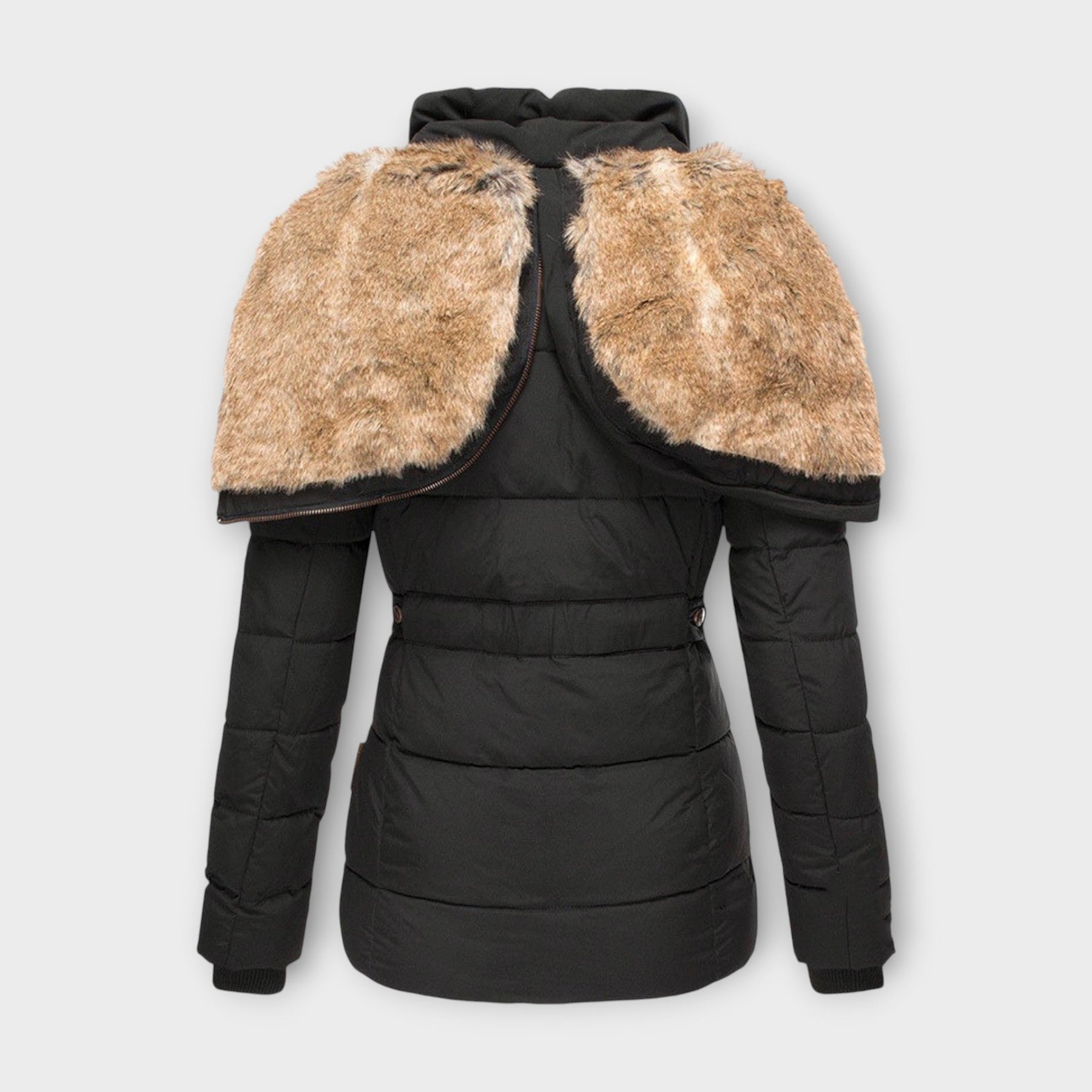 Emyra verbindet kuschelige Wärme mit urbanem Chic. Das weiche Innenfutter schenkt Geborgenheit, während die Kapuze mit Fellbesatz der Jacke eine luxuriöse Note verleiht. Ein stilvoller Begleiter, der kalte Wintertage in gemütliche Momente verwandelt.