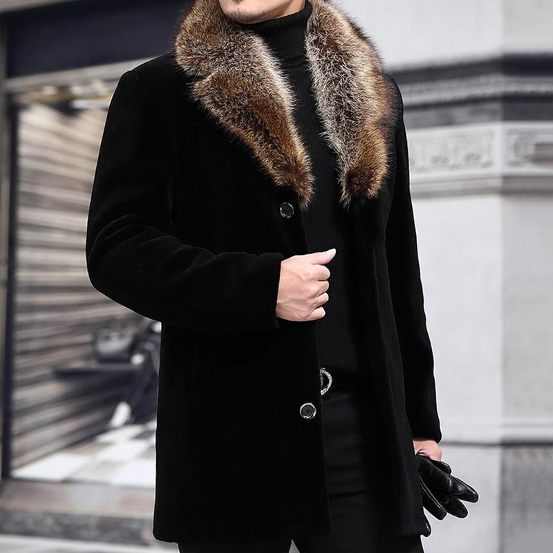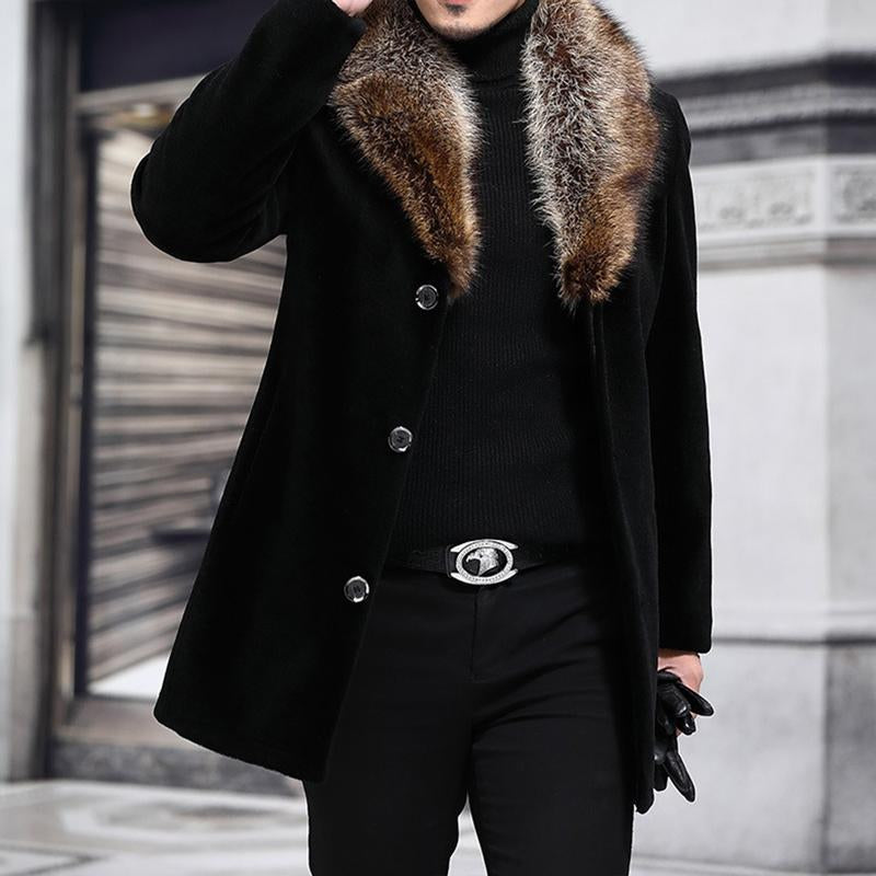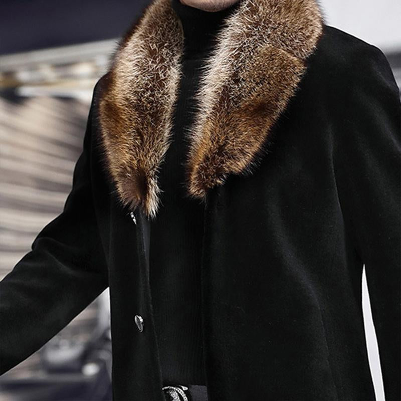 Entdecken Sie den Herren-Einreihermantel mit Pelzkragen – der perfekte Begleiter für kühle Tage. Sein klarer Schnitt und die raffinierten Details sorgen für einen eleganten Look, der überall passt. Egal, ob Büro oder Freizeit, dieser Mantel vereint modernen Stil und praktischen Komfort, um Ihren Alltag mühelos aufzuwerten.