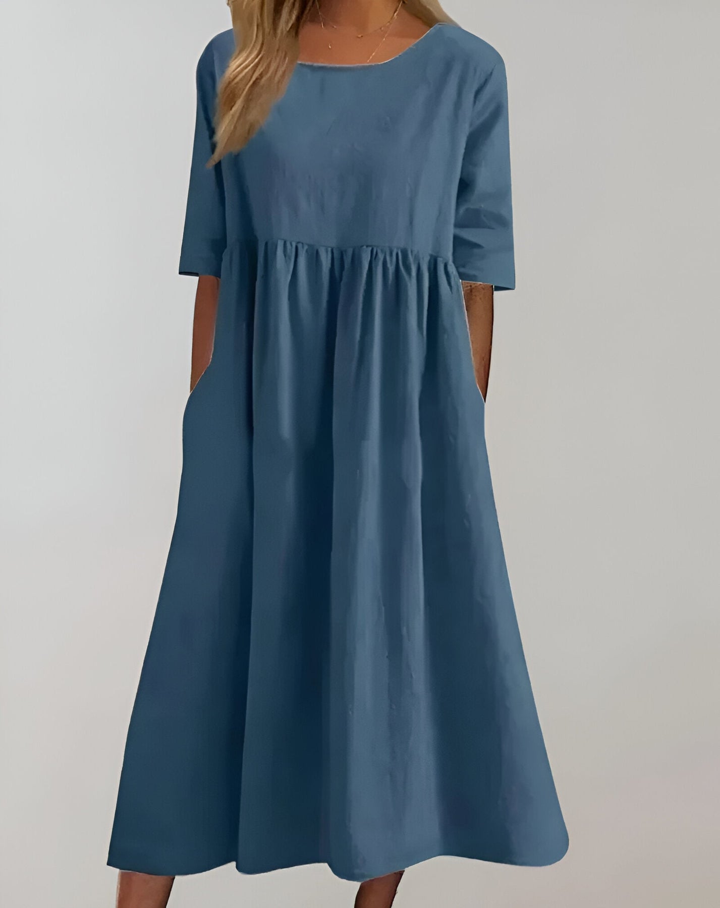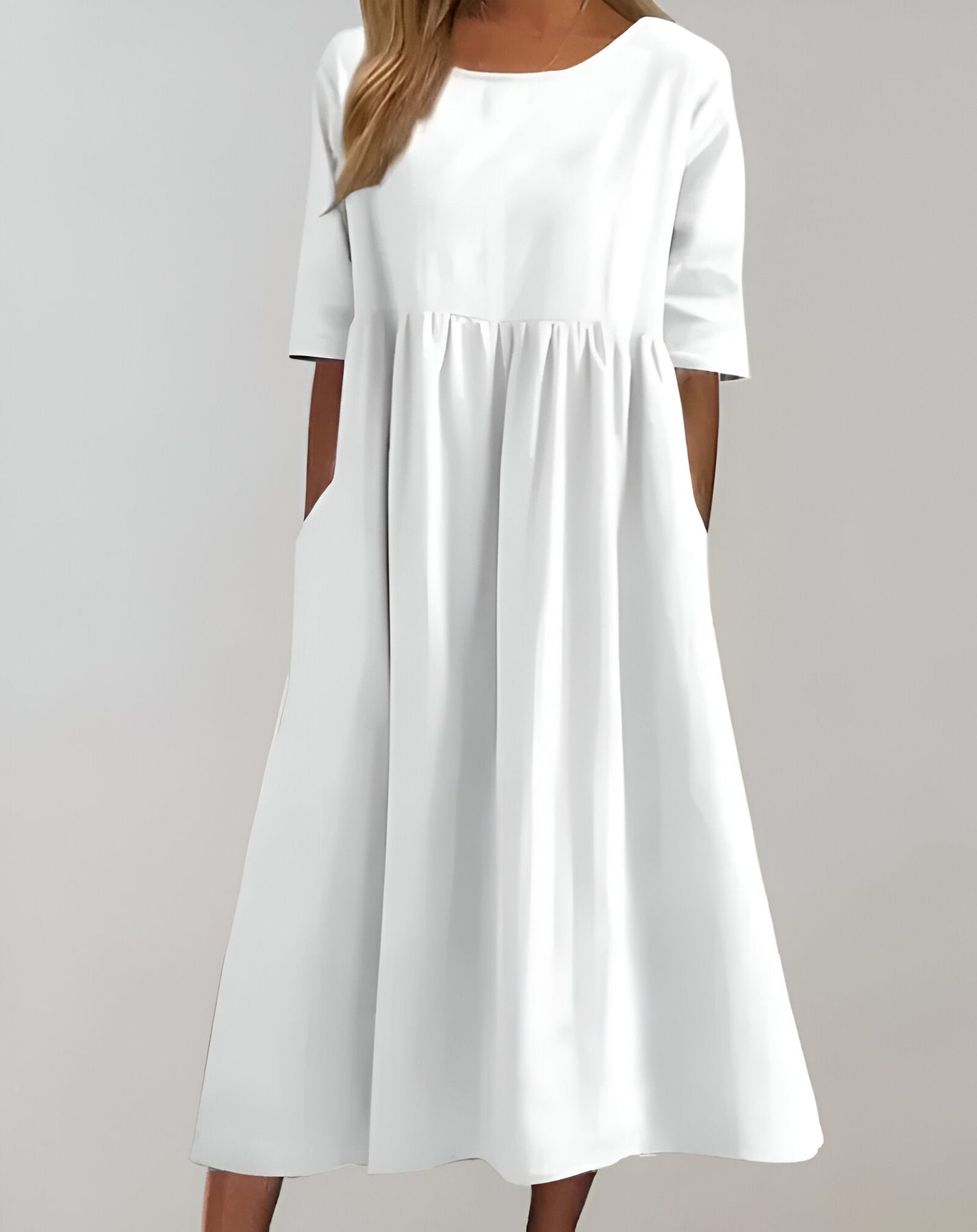 Tauche ein in die Welt der schlichten Eleganz mit diesem vielseitigen Baumwollkleid