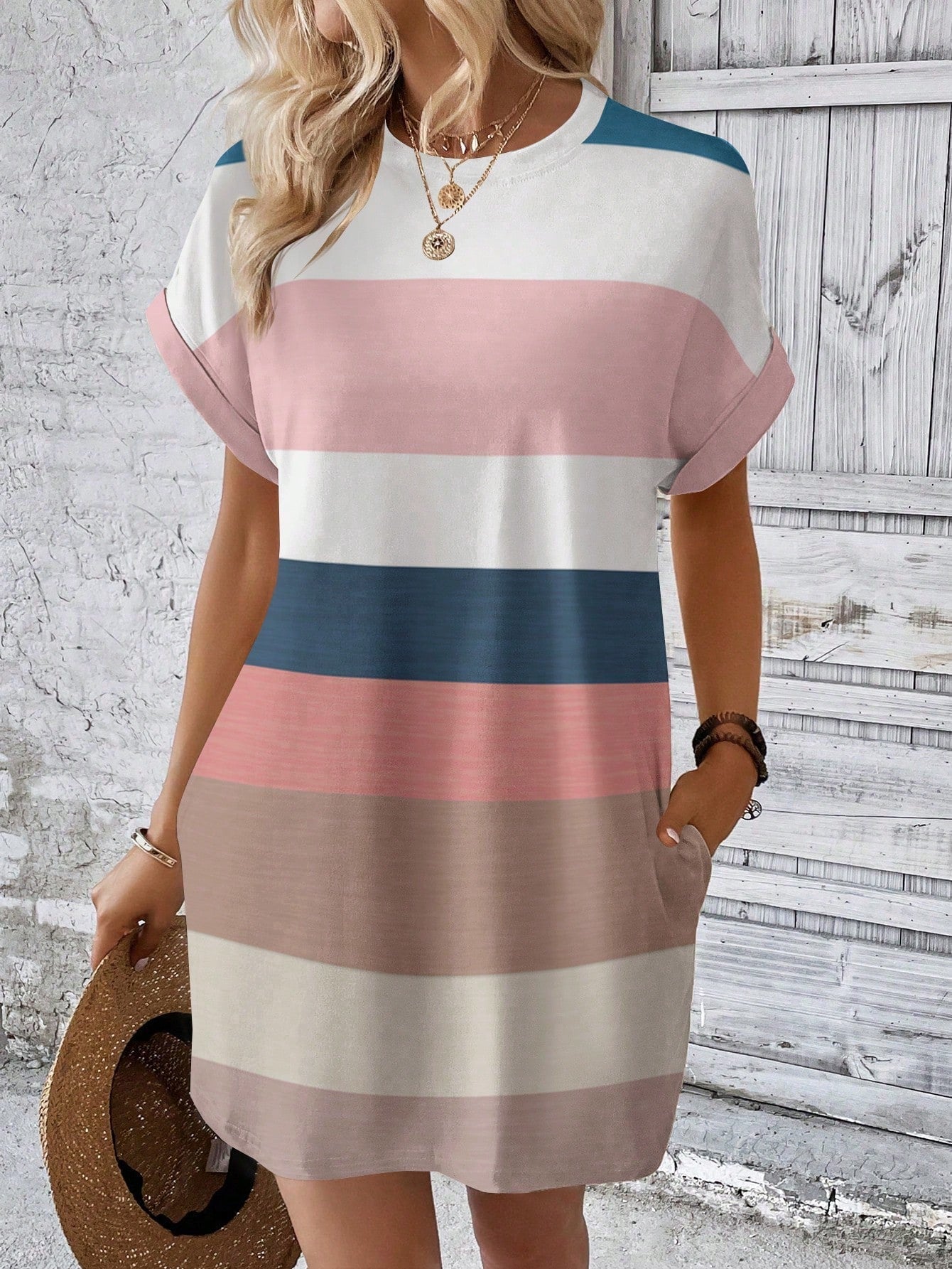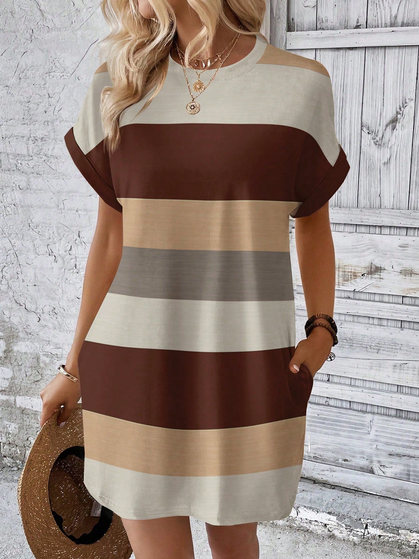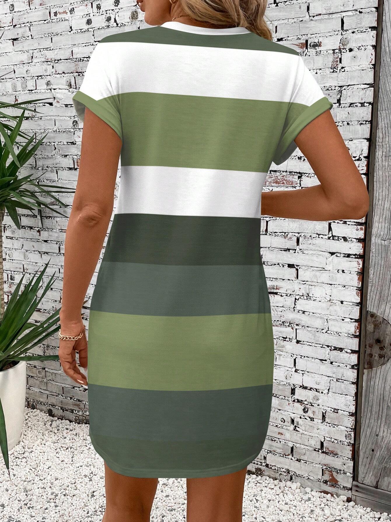 Mit seinen breiten Streifen in natürlichen Tönen – Beige, Braun, Rosa, Grün oder Blau – vermittelt es Ruhe, Natur und elegante Einfachheit. Hergestellt aus einem dehnbaren und leichten Stoff, bietet es optimalen Komfort den ganzen Tag über.