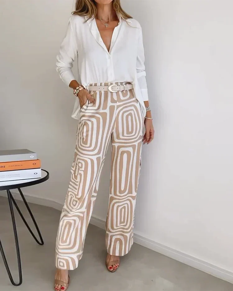 - Gestaltung: Zeitlos weiße Bluse mit klassischem Kragen & stilvoll gemusterter Hose