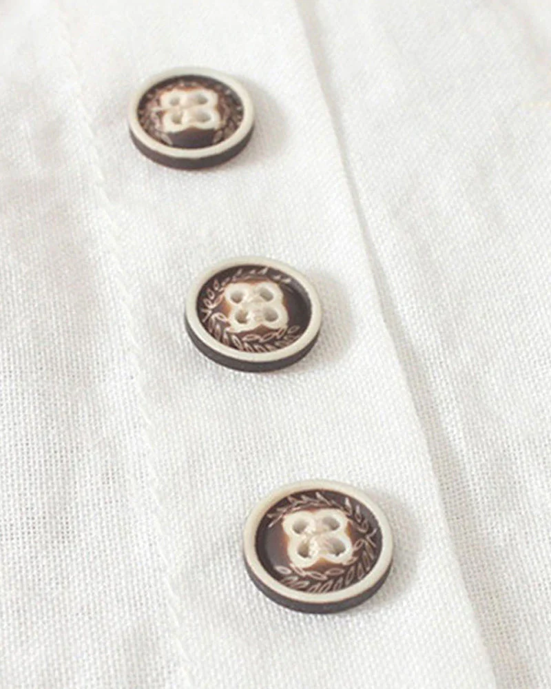 - Verschluss: Dekorative Knopfleiste auf der Vorderseite