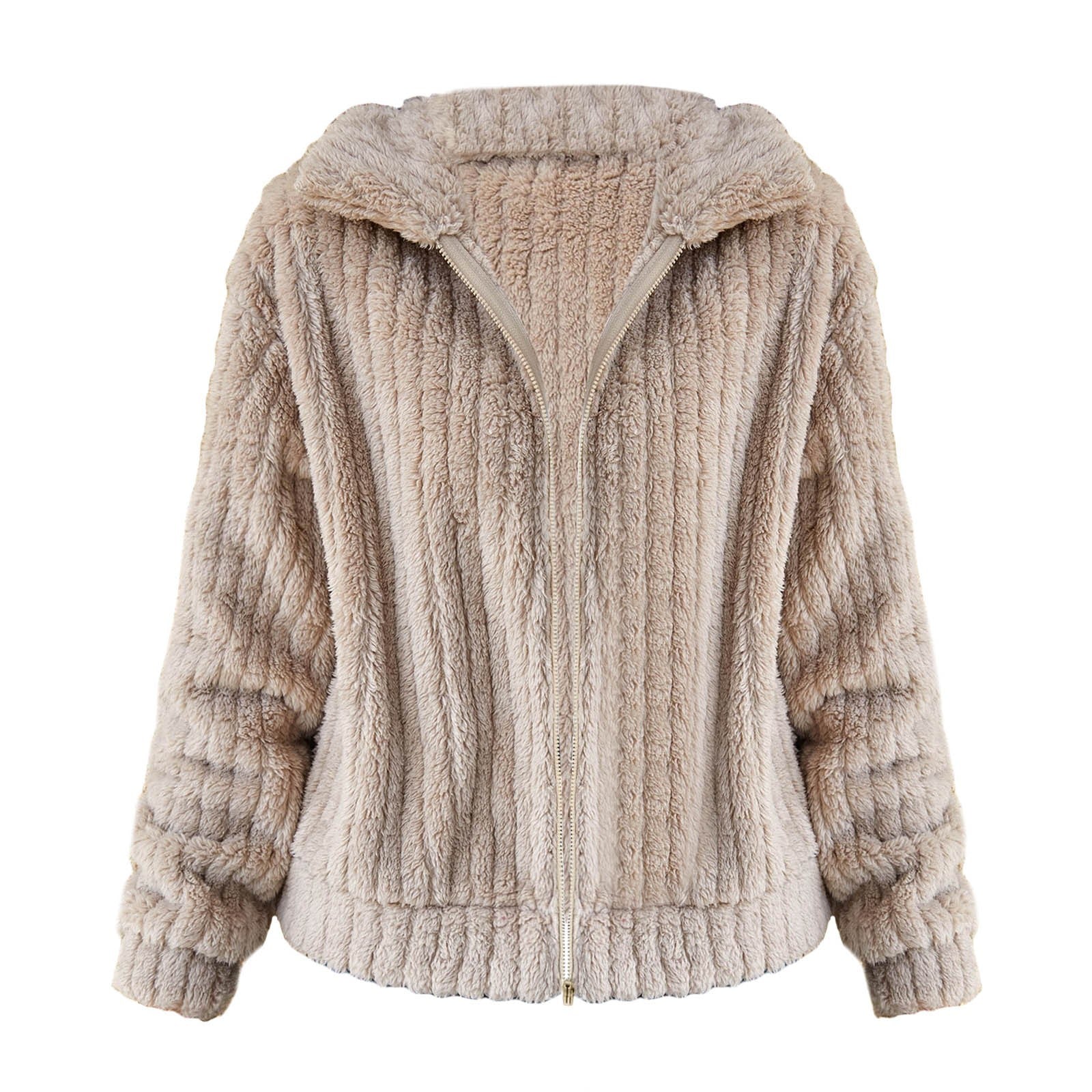 Der Mantel ist ein kurzes Modell mit langen Ärmeln, einem Reißverschluss auf der Vorderseite und komplett aus super weichem und warmem Fell gefertigt, ideal für Winterlooks.