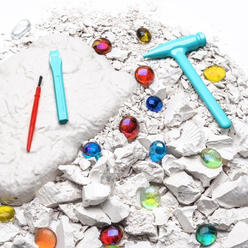 Kinder langweilen sich oft mit den üblichen Spielzeugen, die sie stundenlang an den Bildschirmen kleben lassen. Wenn Sie auf der Suche nach etwas anderem sind, das ihre Fantasie und Neugier anregt, ist das Grabungsset genau das Richtige! Mit diesem praktischen Abenteuerset wird die Spielzeit zu einer spannenden Entdeckungsreise, bei der die Kinder echte Edelsteine ausgraben und gleichzeitig etwas über Archäologie und Wissenschaft lernen können.