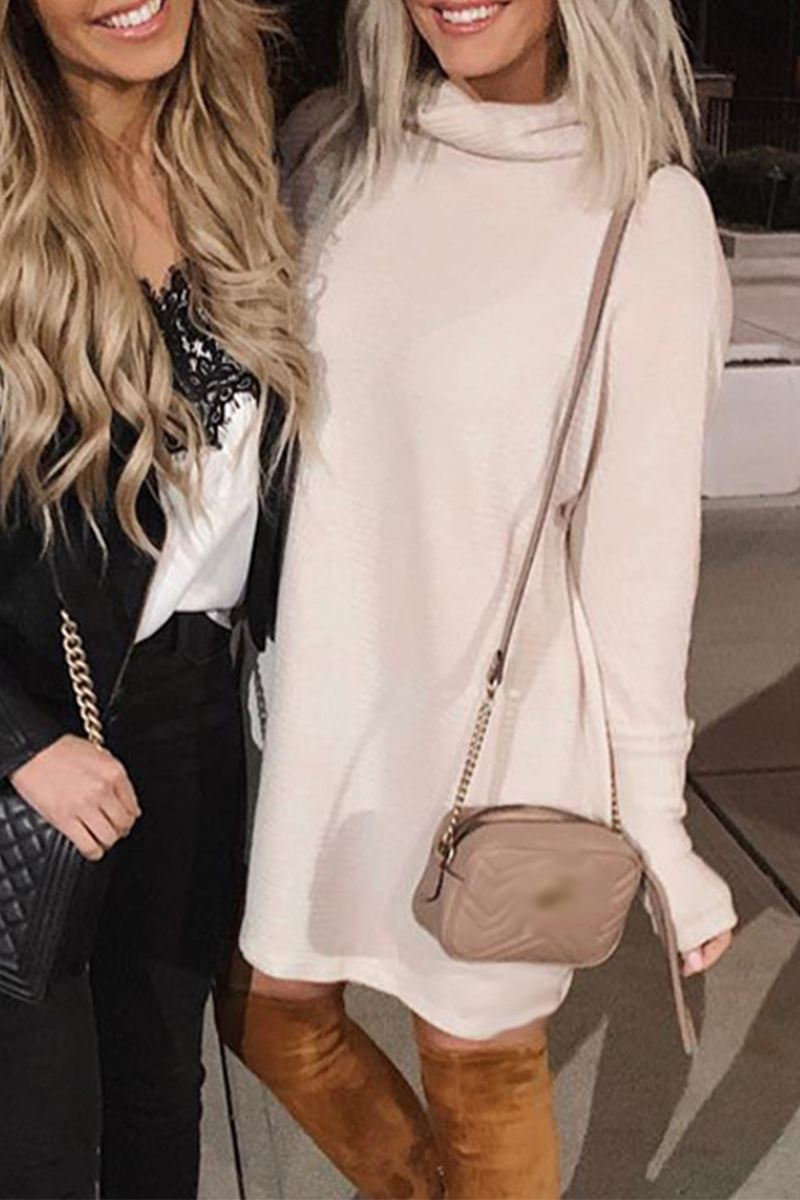 Mit diesem langärmeligen Minikleid, das sowohl für Komfort als auch für Eleganz steht, sind Sie stilvoll unterwegs. Die schlichte Silhouette und der elegante Kragen machen es perfekt für legere Ausflüge oder zwanglose Treffen. Dieses vielseitige Kleid lässt sich sowohl elegant als auch lässig stylen und bietet einen schmeichelhaften, modischen Look, der zu jedem Anlass passt.