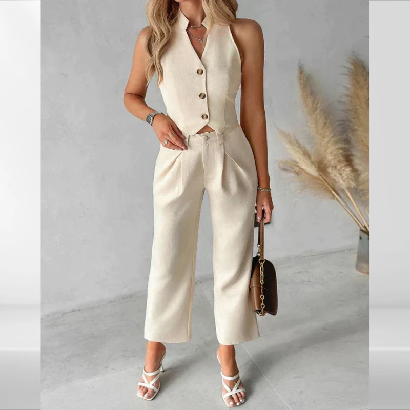 Levita - Beigefarbenes zweiteiliges Büro-Set mit ärmellosem Oberteil und Hose