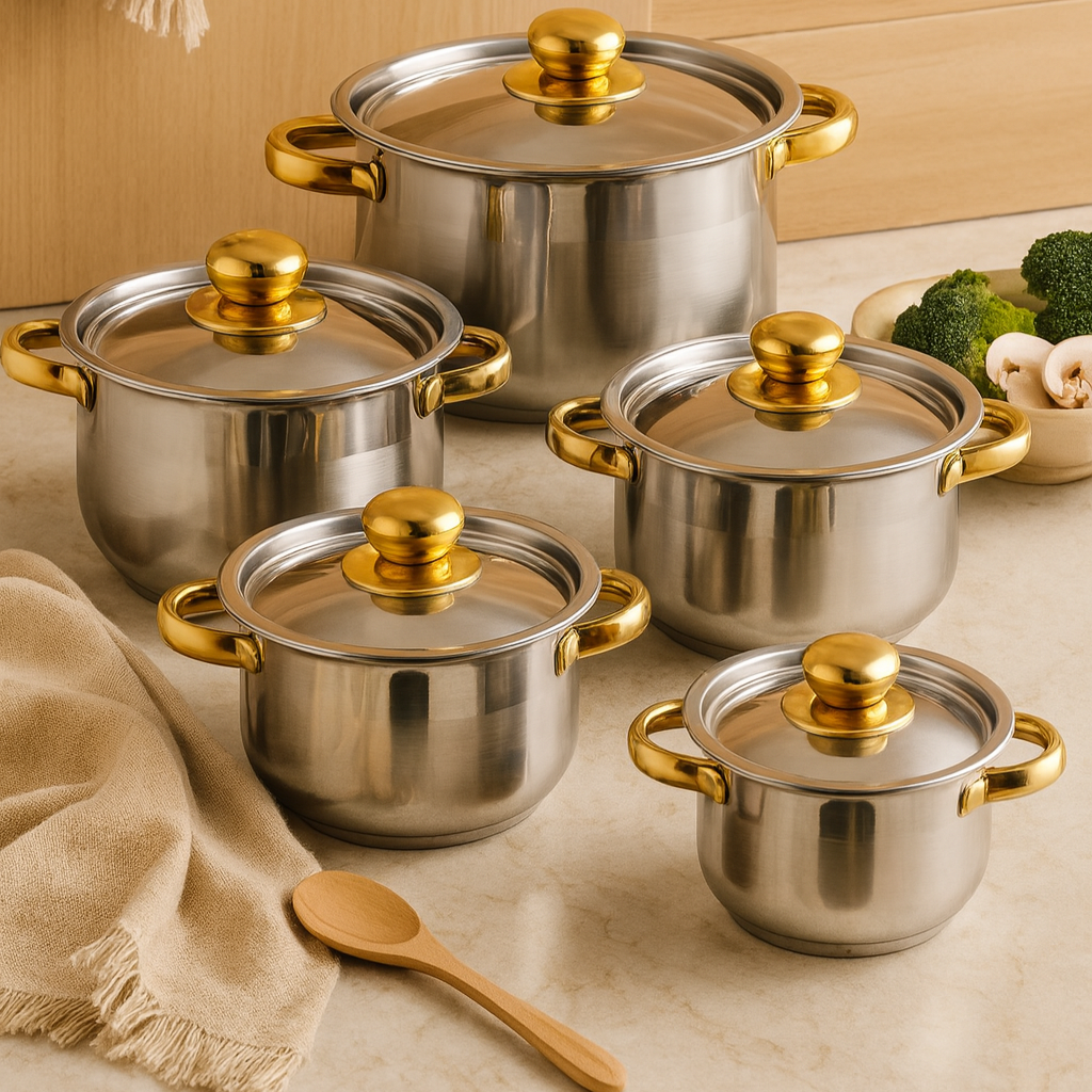 • Komplettes 5-teiliges Kochgeschirr-Set – Enthält Suppentöpfe, Pfannen und Deckel für alle Ihre Kochbedürfnisse.