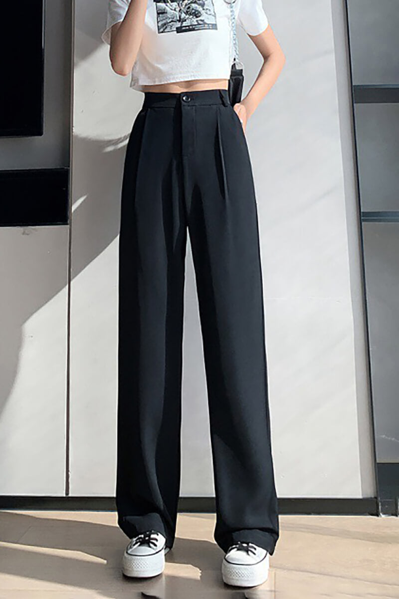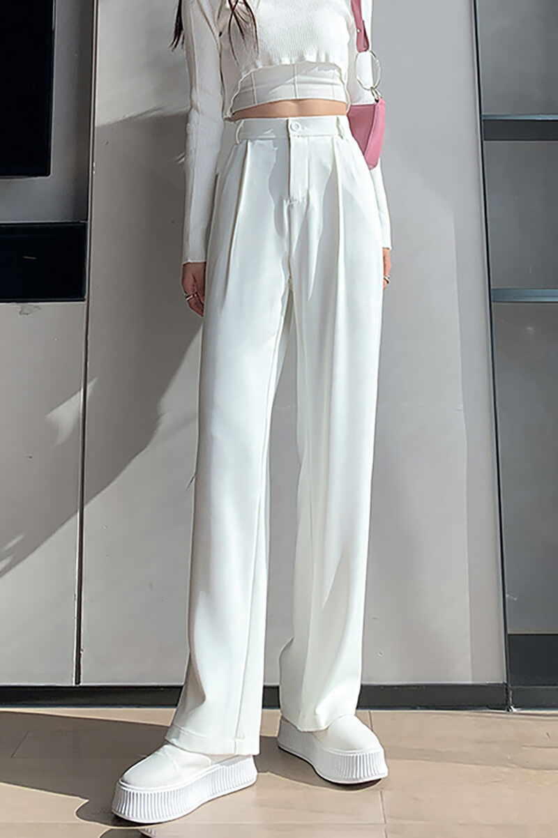 Maßgeschneiderte, gerade Hosen für Tag und Nacht. Das Stück hat eine gerade Silhouette, eine lange Länge und einen Bund mit Verschluss.