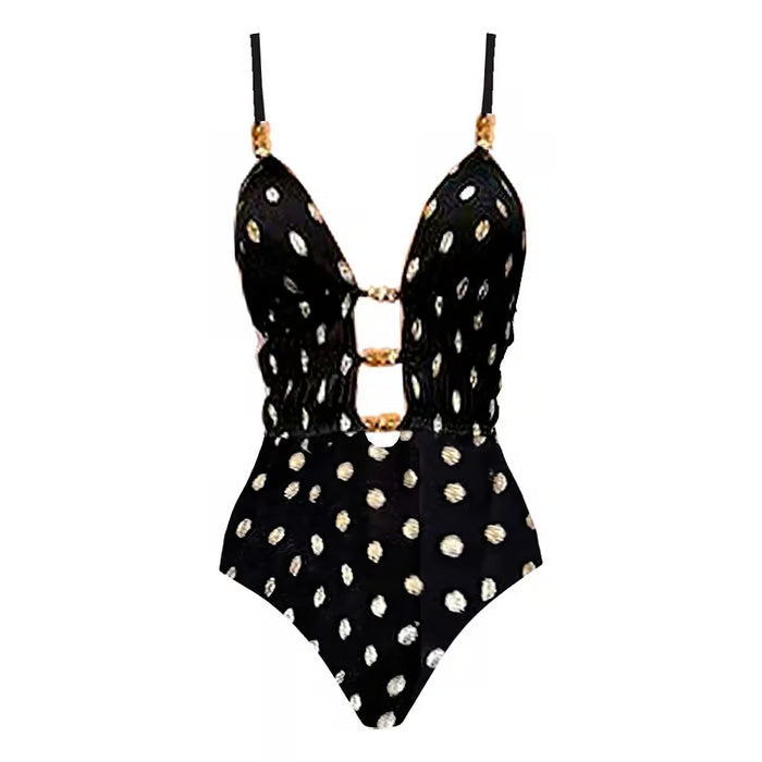 Klassisch und charmant - dieses zweiteilige Badeanzug-Set mit Tupfenmuster ist perfekt für einen femininen Retro-Look.
