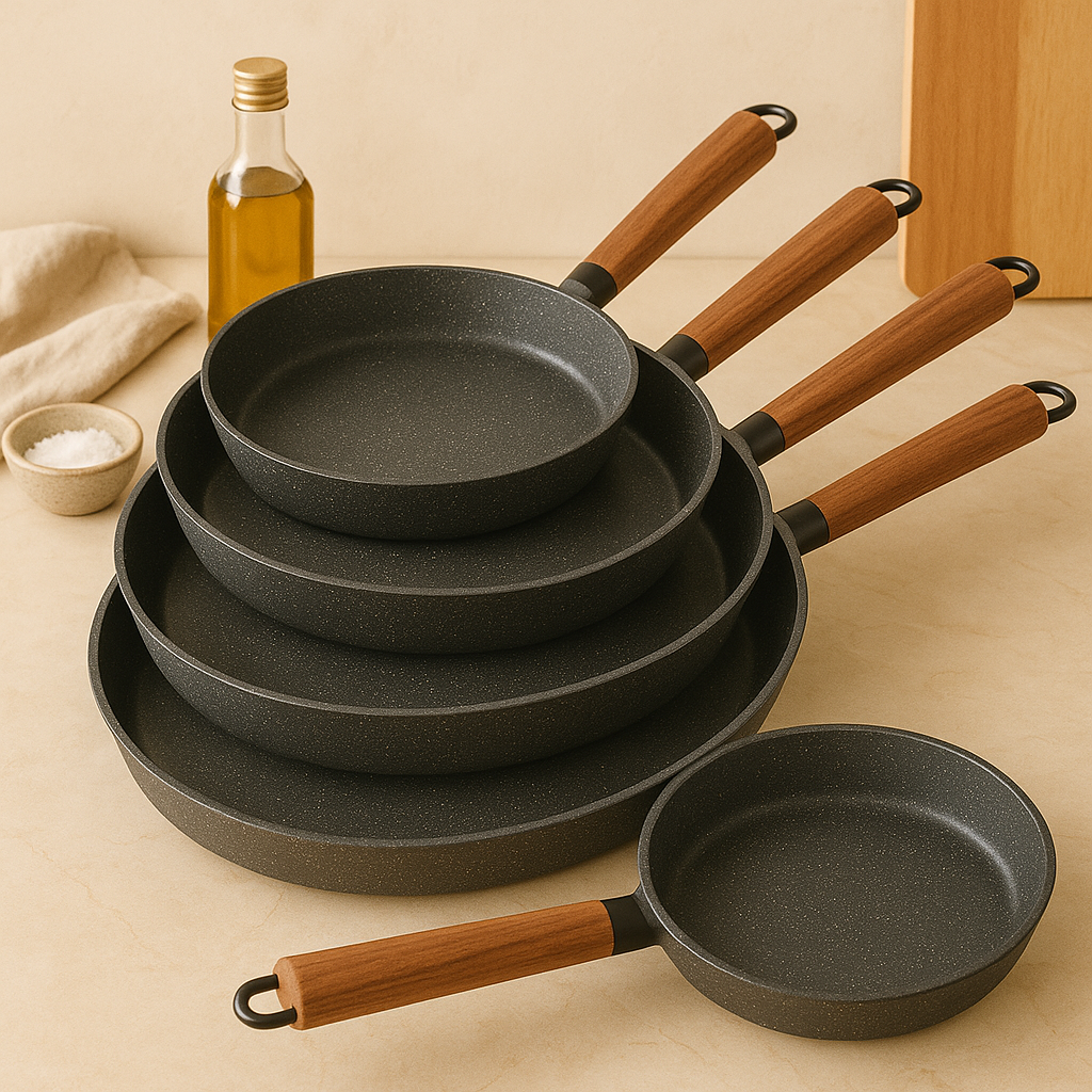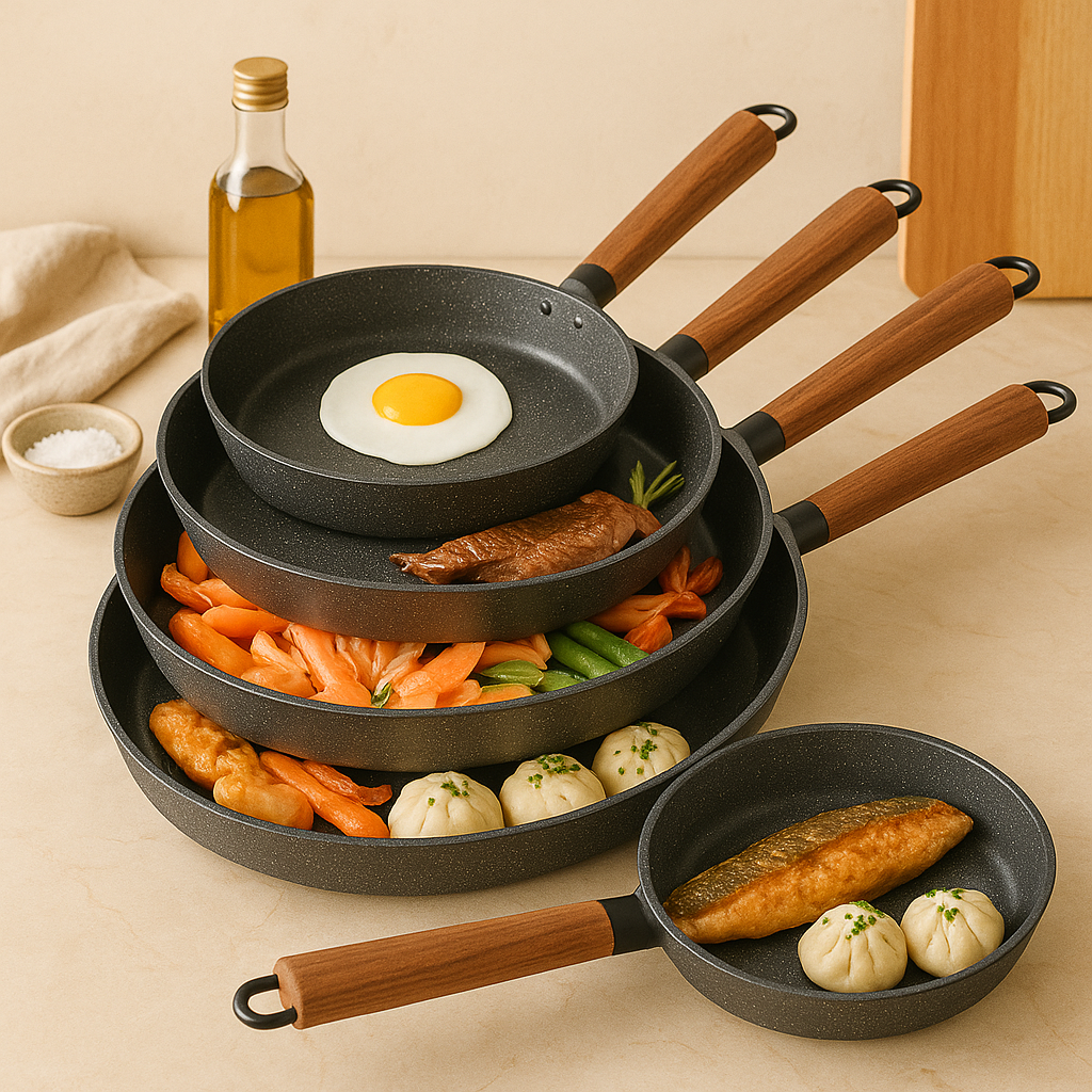 • Mehrere Größen: Enthält 24, 26, 28, 30 und 32 cm Pfannen für unterschiedliche Kochbedürfnisse.