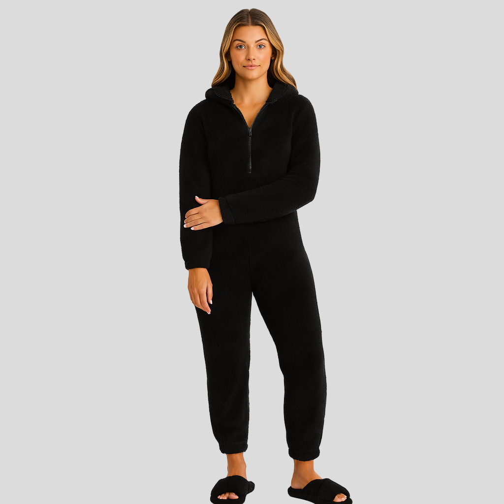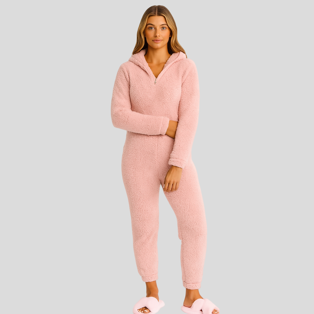 Mirella | Flauschiger Kapuzen-Schlafanzug mit Reißverschluss