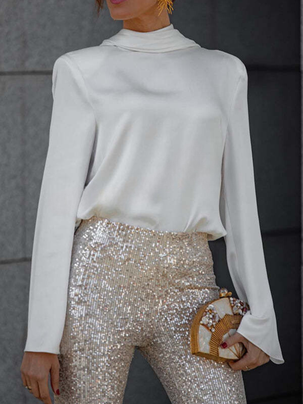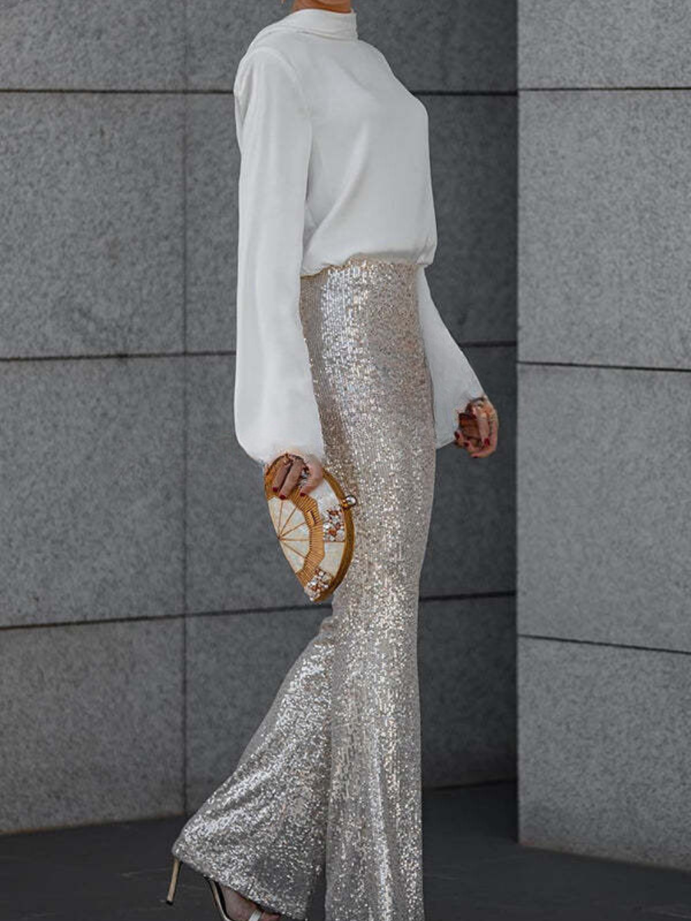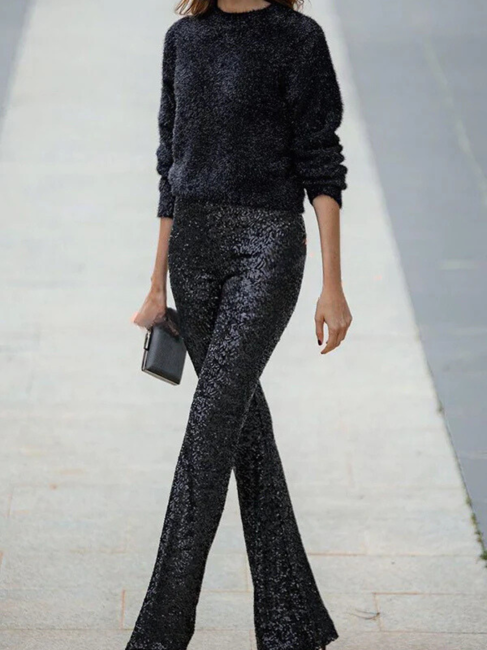 Verleihen Sie Ihren Abenden einen Hauch von Glanz und Glamour mit der Peggy Glockenbundhose. Mit funkelnden Pailletten und einer schmeichelhaften Passform ist dieses Modell perfekt für besondere Anlässe. Unser Bestseller, der bei jedem Schritt glänzt!