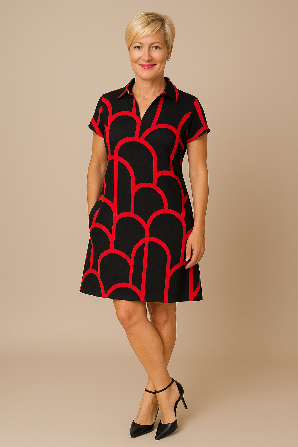 Kreieren Sie ein zeitloses und stilvolles Outfit mit dem Helmi™ Midikleid mit Schlaglinie und kurzen Ärmeln. Bestellen Sie jetzt und erleben Sie, wie dieses Kleid Ihre natürliche Schönheit unterstreicht und Komfort für jeden Tag bietet!