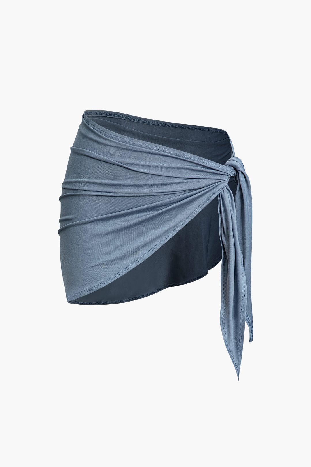 - Drapierter Minirock – Der seitliche Knoten betont die Taille und verleiht dem Look eine elegante Note.