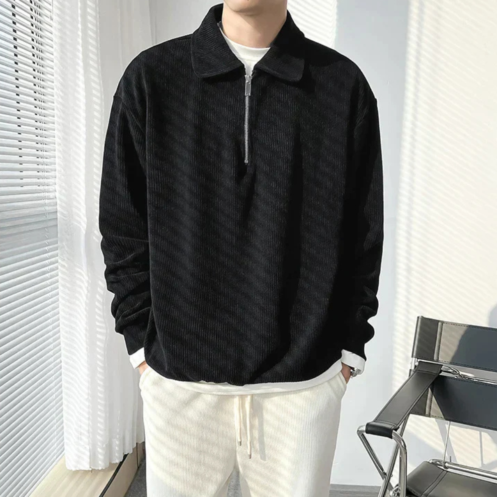 Der Poldi Herrenpullover vereint modernes Design mit maximalem Komfort. Sein minimalistischer Stil und der praktische Reißverschlusskragen machen ihn zur perfekten Wahl für kühle Tage – ob im Büro, zu Hause oder bei einem entspannten Spaziergang.