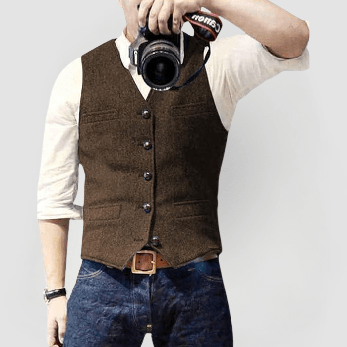Entdecken Sie die stilvolle Reiner-Weste, unser beliebtes Design, das Eleganz und Komfort vereint. Perfekt für jede Gelegenheit, verleiht sie Ihrem Kleiderschrank einen modernen und raffinierten Touch, mit beeindruckenden Details und hochwertigen Materialien.