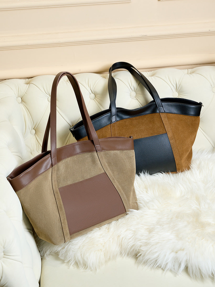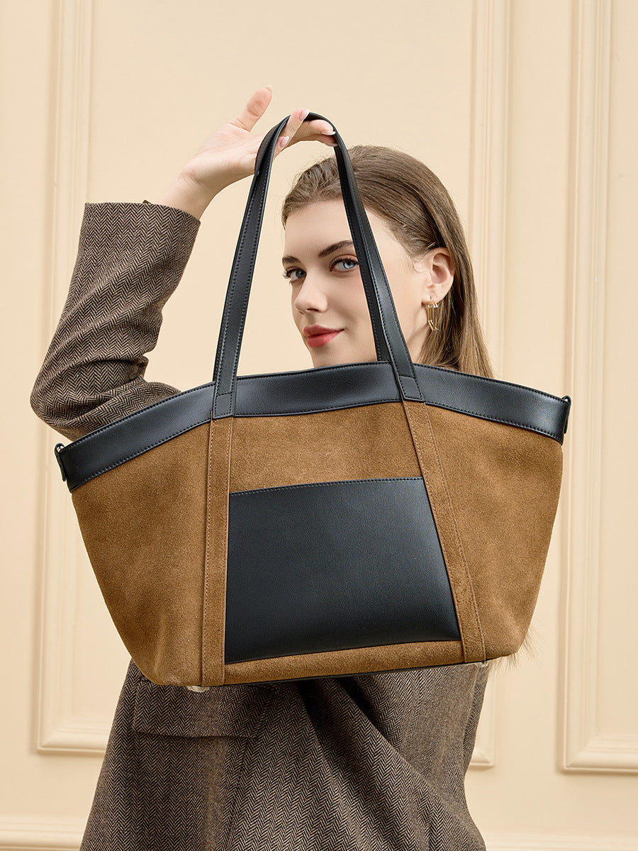 Elegante Shopper-Bag im modernen Design – die Kombination aus Wildleder-Optik und glatten PU-Lederelementen verleiht der Tasche einen hochwertigen Look. Perfekt für Büro, Alltag und Reisen mit viel Stauraum und stilvollem Auftritt.