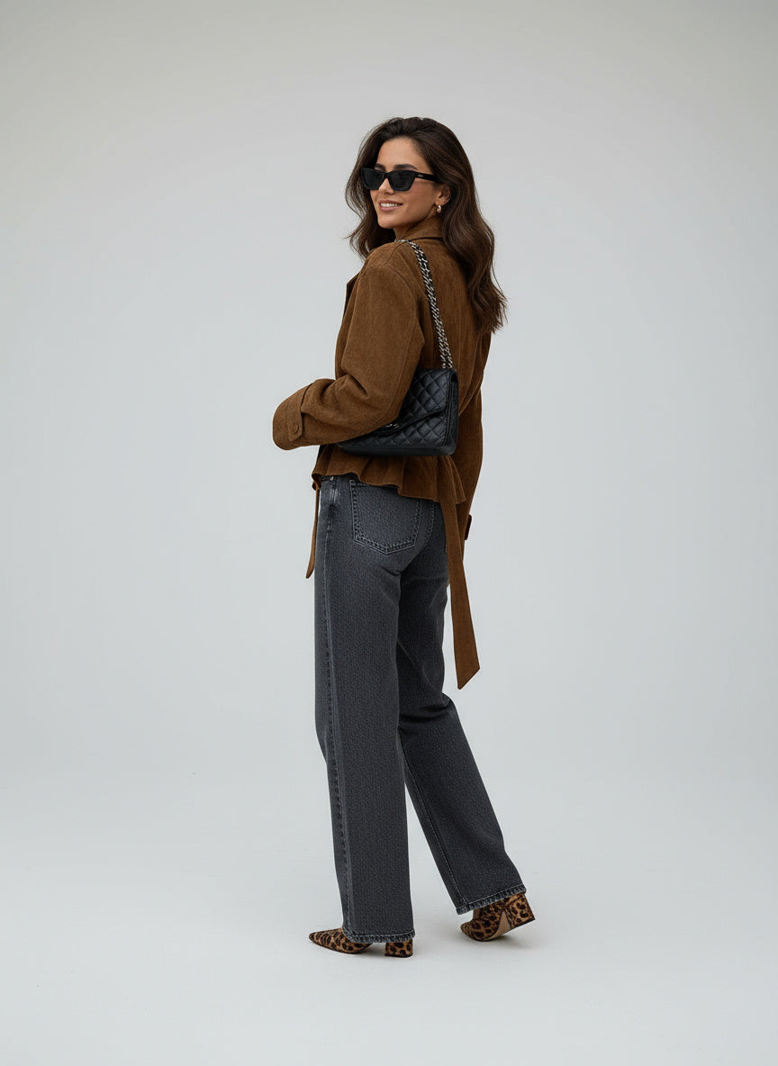 Dieser elegante wickelmantel aus wildleder ist ein vielseitiges key-piece, das zeitlosen stil mit funktionalem komfort verbindet. der feminine slim fit und der klassische reverkragen verleihen dem mantel eine retro-inspirierte note, während der praktische bindegürtel eine individuelle passform ermöglicht. perfekt kombinierbar für elegante looks im alltag oder für besondere anlässe.