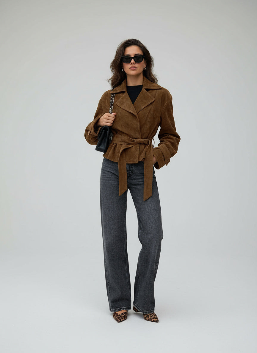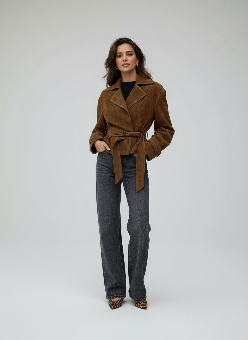 Vydra | Damen Wickelmantel Wildleder Braun Mit Bindegürtel