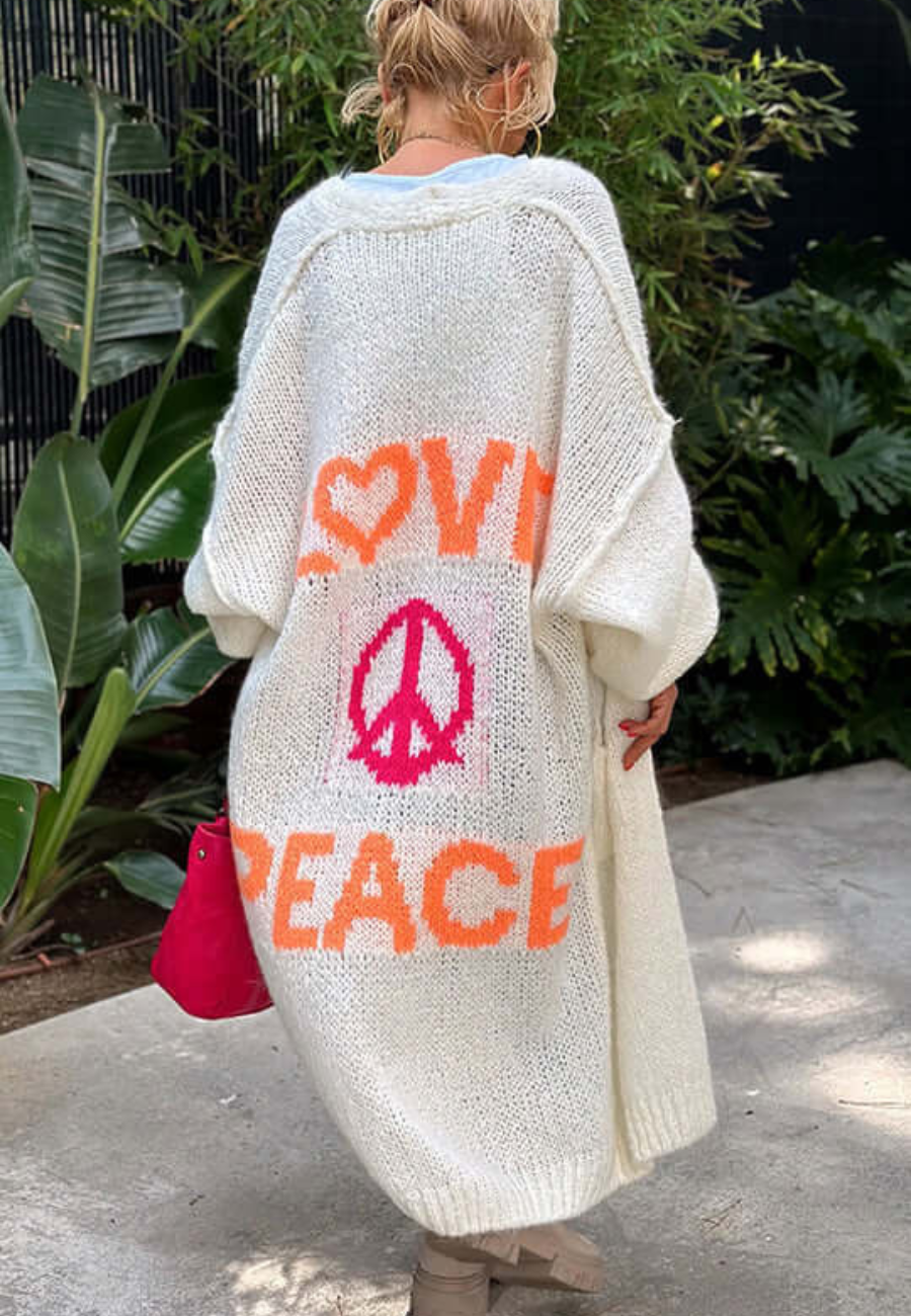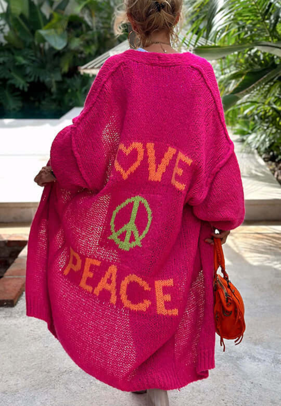 Zeitlose Eleganz: Die elegante Farbe und die lange Silhouette machen diese Strickjacke zu einer stilvollen Ergänzung für jede Garderobe.