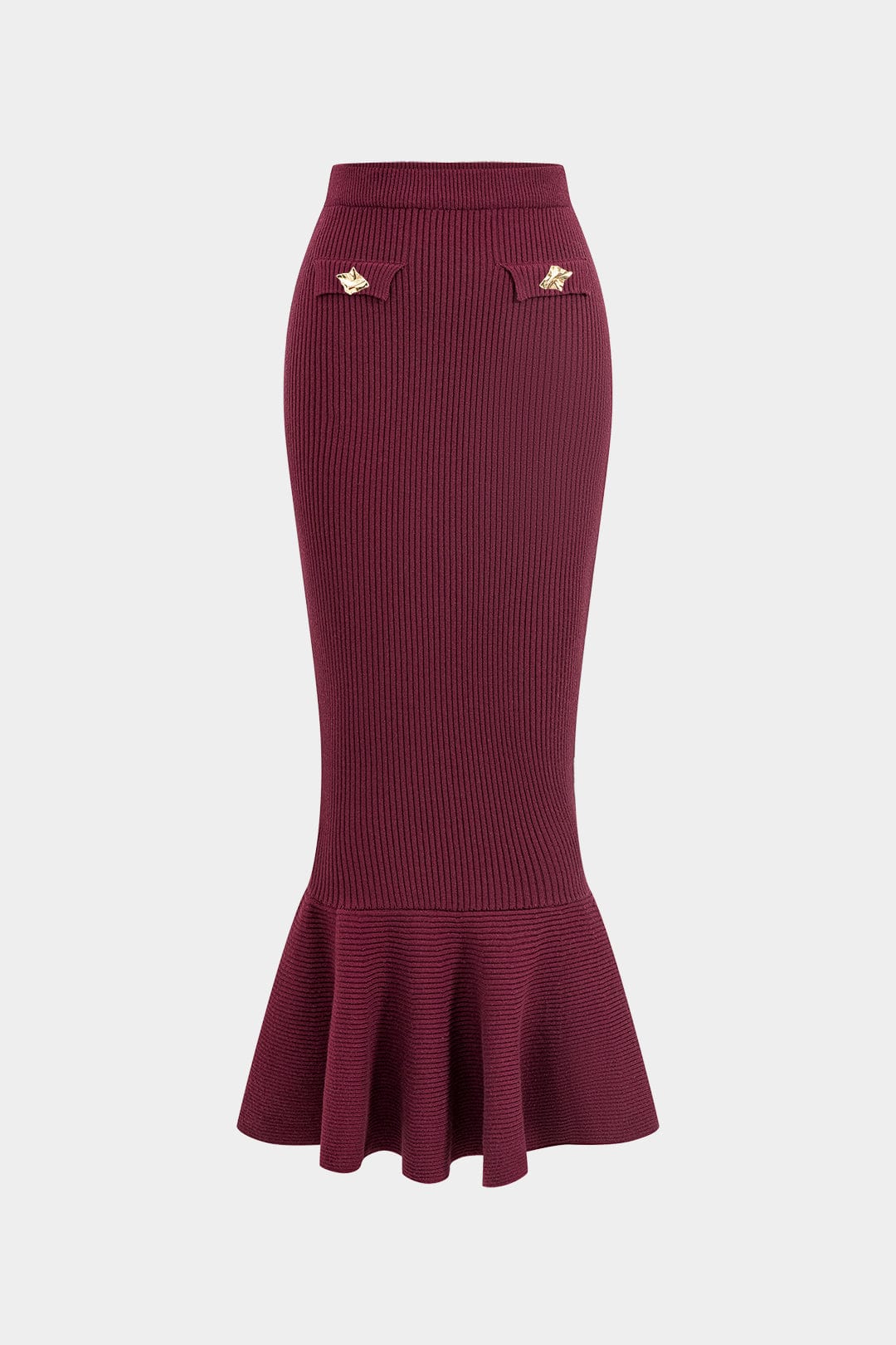 Das Atasha Zweiteiler-Set ist die perfekte Kombination aus femininer Eleganz und modernem Chic. Das enganliegende Strick-Top mit breitem Kragen und stilvollen goldenen Knöpfen verleiht dem Outfit eine edle Note. Der figurbetonte Midirock mit ausgestelltem Volant-Saum sorgt für einen eleganten und schwungvollen Look.