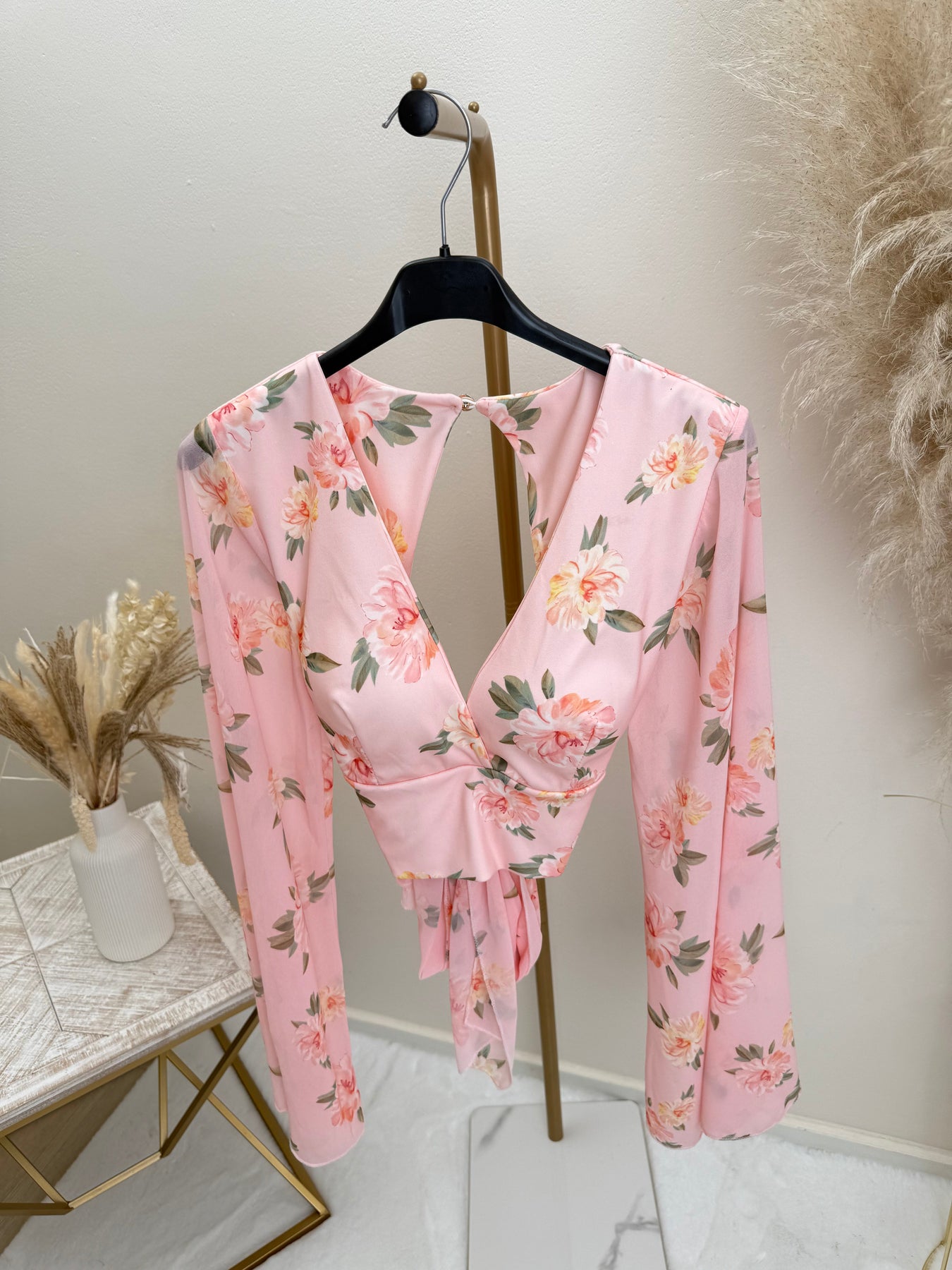 Stilvolle Binde-Bluse mit leicht transparentem Stoff und luftigen Ärmeln.