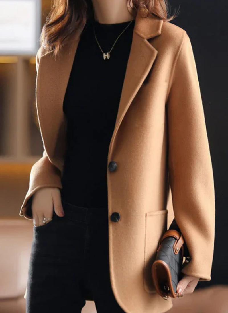 Zeitloses Design: Schlanke, lange Silhouette mit raffinierten Details. Ideal für elegante, geschichtete Looks.