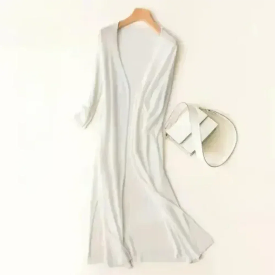 Diese lange Strickjacke vereint stilvolle Eleganz und Komfort, perfekt für jede Jahreszeit. Egal ob lässig oder schick kombiniert, sie wertet jedes Outfit auf und sorgt für ein angenehmes Tragegefühl.