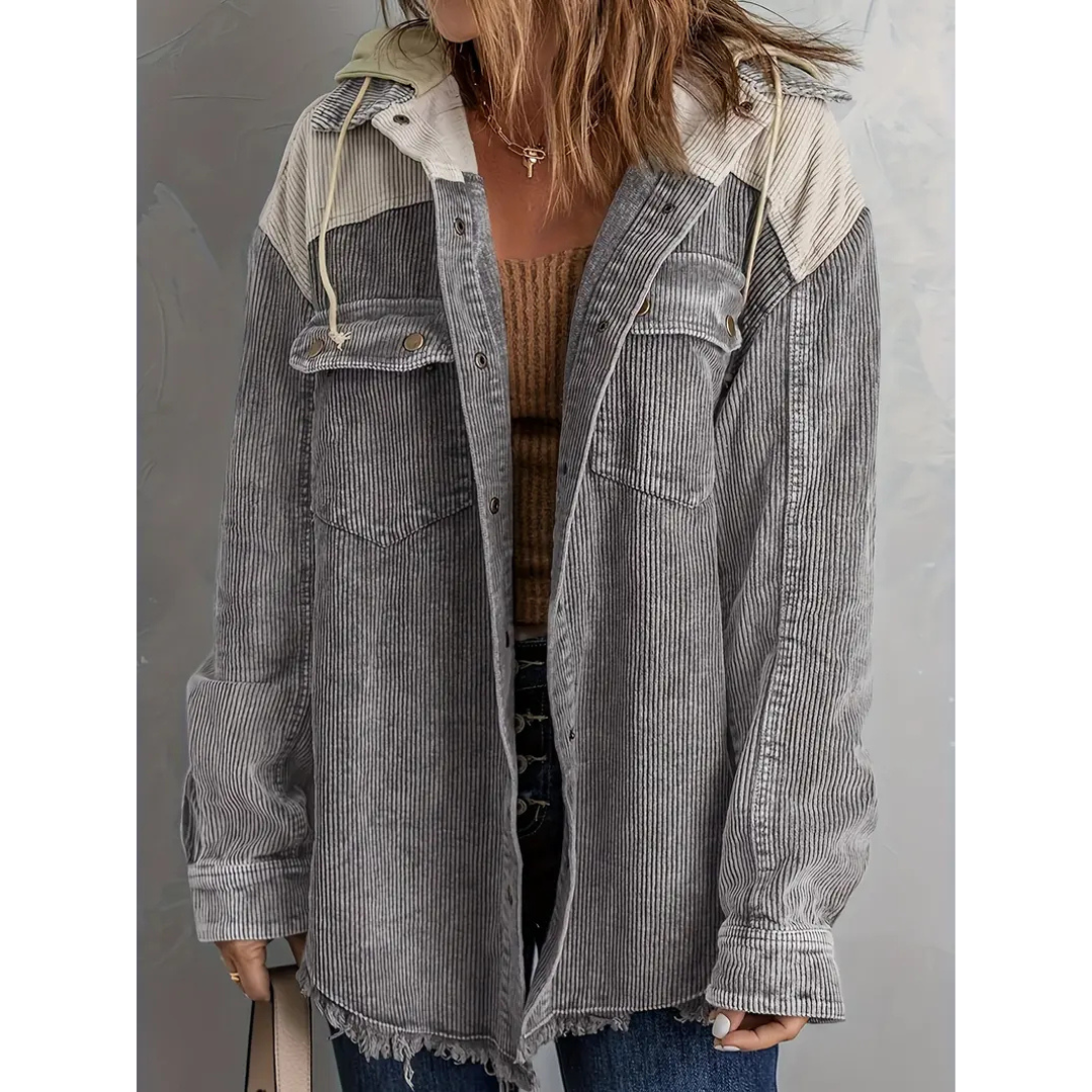 • Kapuze mit Details: Die praktische Kapuze schützt vor Wind und Kälte, während die trendigen Knopfdetails einen modernen Touch verleihen.
