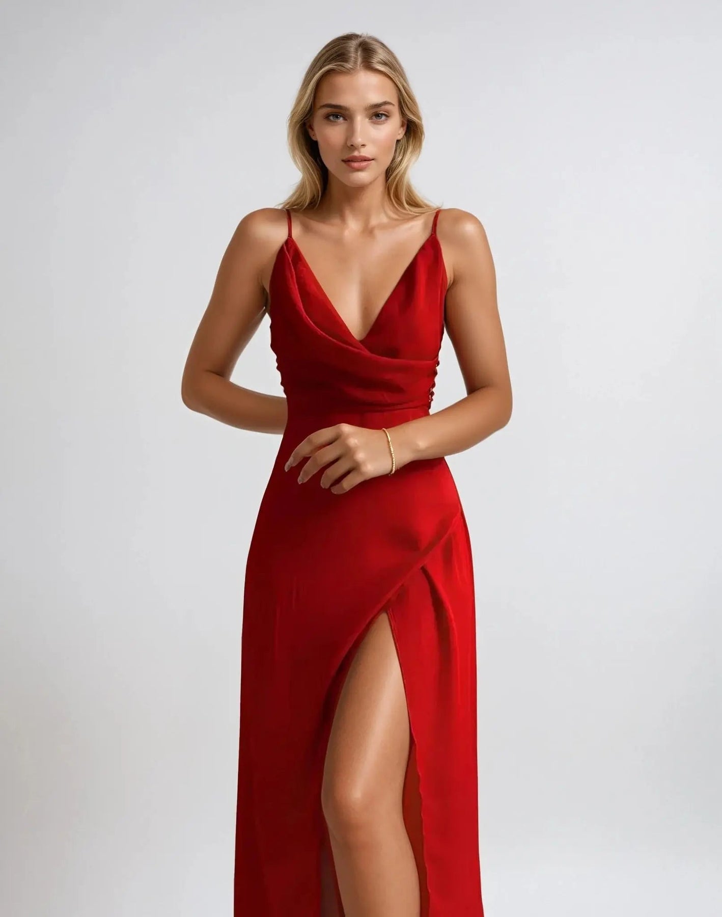 Entfesseln Sie Ihre Ausstrahlung mit unserem eleganten V‑Ausschnitt Abendkleid – ein echtes Statement auf jeder Party oder festlichen Veranstaltung. Dieses Partykleid überzeugt mit einem tiefen V‑Ausschnitt, der raffinierte Sinnlichkeit vermittelt, und einem femininen, taillierten Schnitt, der Ihre Figur perfekt betont .