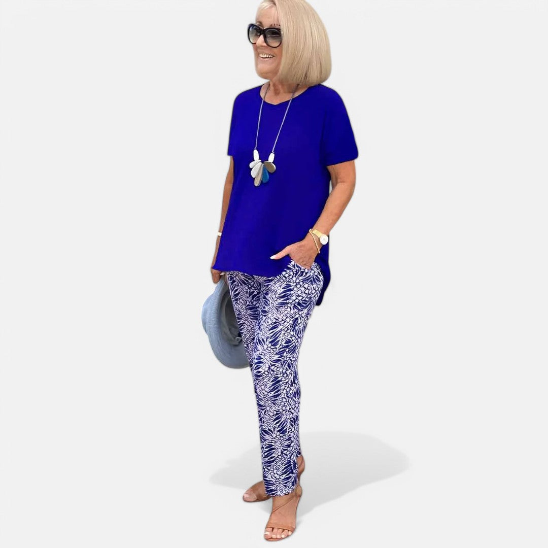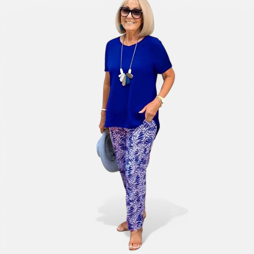 Sie suchen nach einem stilvollen und bequemen Outfit, das zu jedem Anlass passt? Unser beliebtes zweiteiliges Emma-Set bietet ein schickes, tailliertes Oberteil und eine fließende, gemusterte Hose, die sich perfekt für legere Ausflüge, Brunch-Termine oder Abendveranstaltungen eignet. Das leichte, atmungsaktive Design sorgt dafür, dass Sie den ganzen Tag über bequem und modisch bleiben.