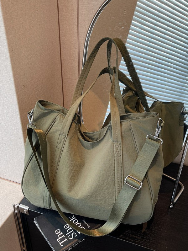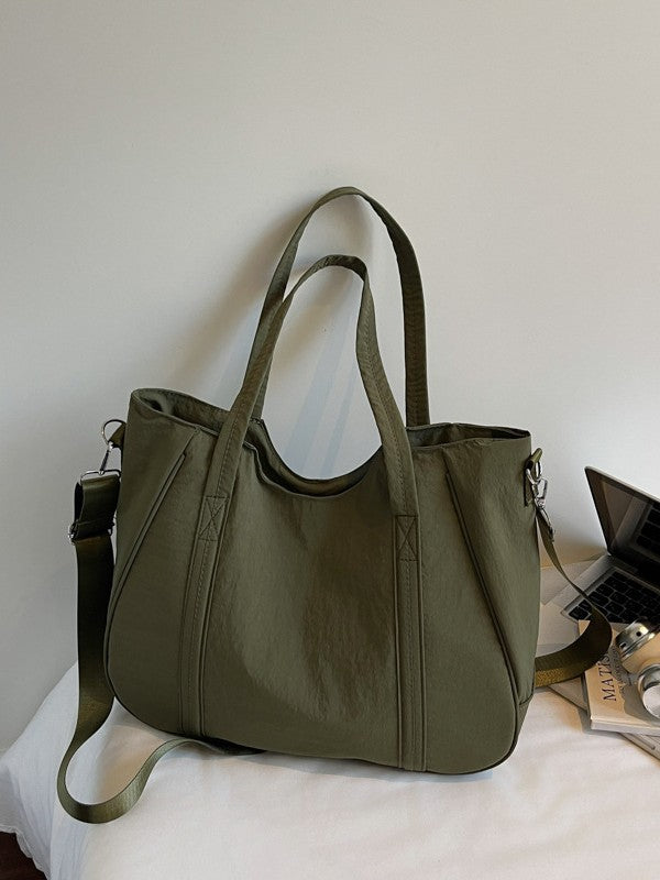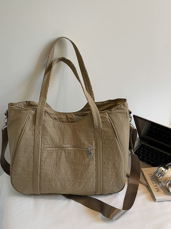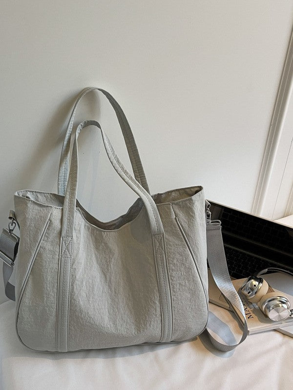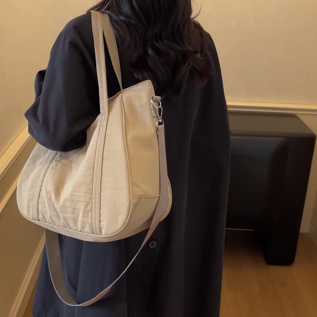 diese minimalistische nylon-tragetasche vereint funktionalität mit modernem alltagsdesign. durch ihr leichtes, wasserabweisendes material ist sie perfekt für arbeit, uni oder wochenendausflüge geeignet. mit ihrer klaren form und den dezenten farbtönen passt sie zu jedem outfit – ein vielseitiges accessoire für jeden tag.