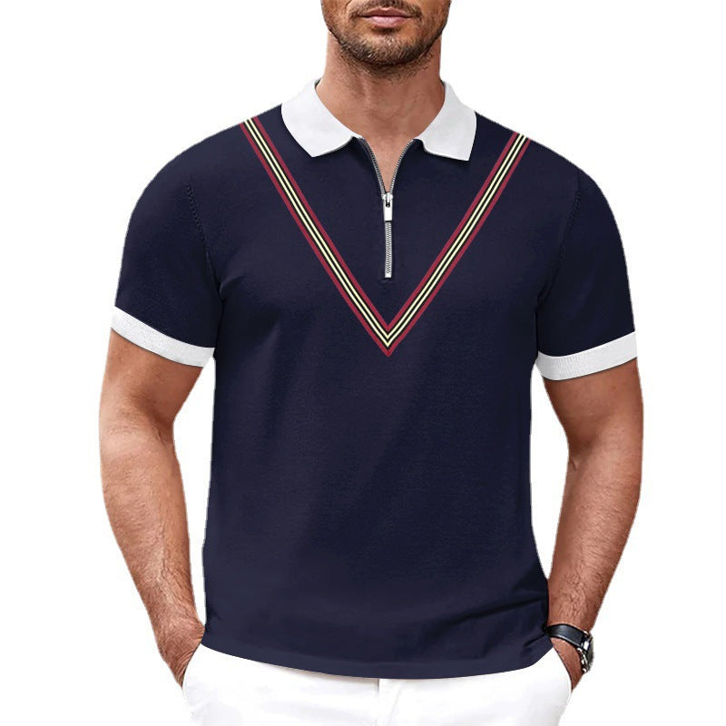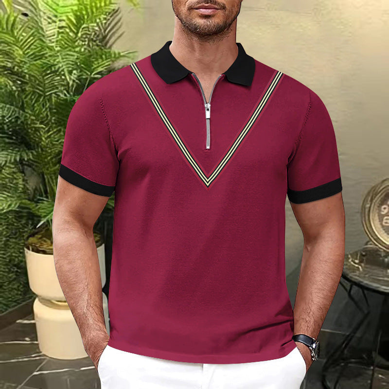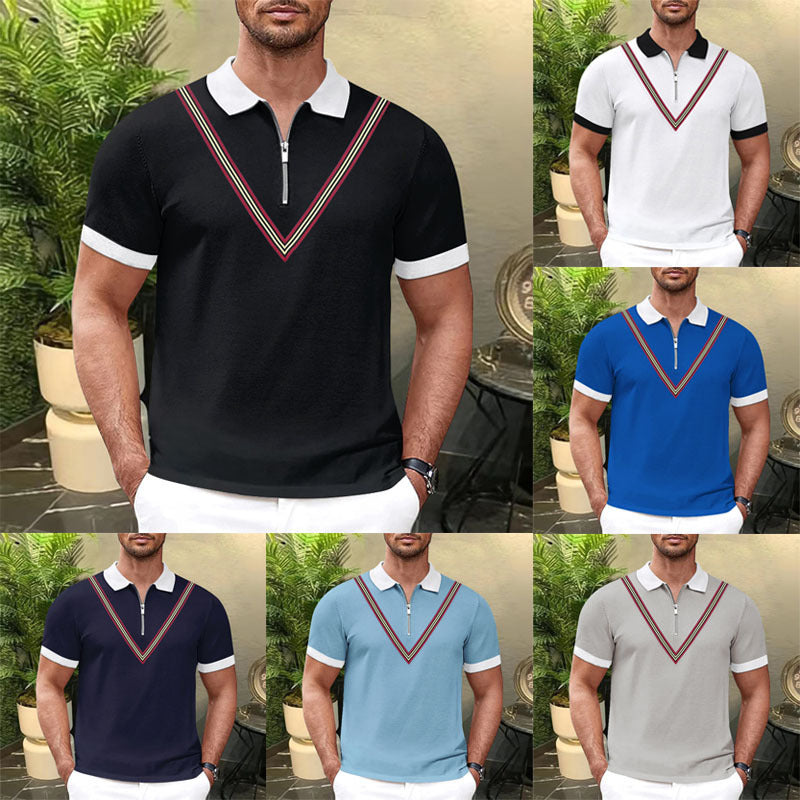 Herren Kurzarm Polohemd mit Reißverschluss und farbigen Akzenten Aliams