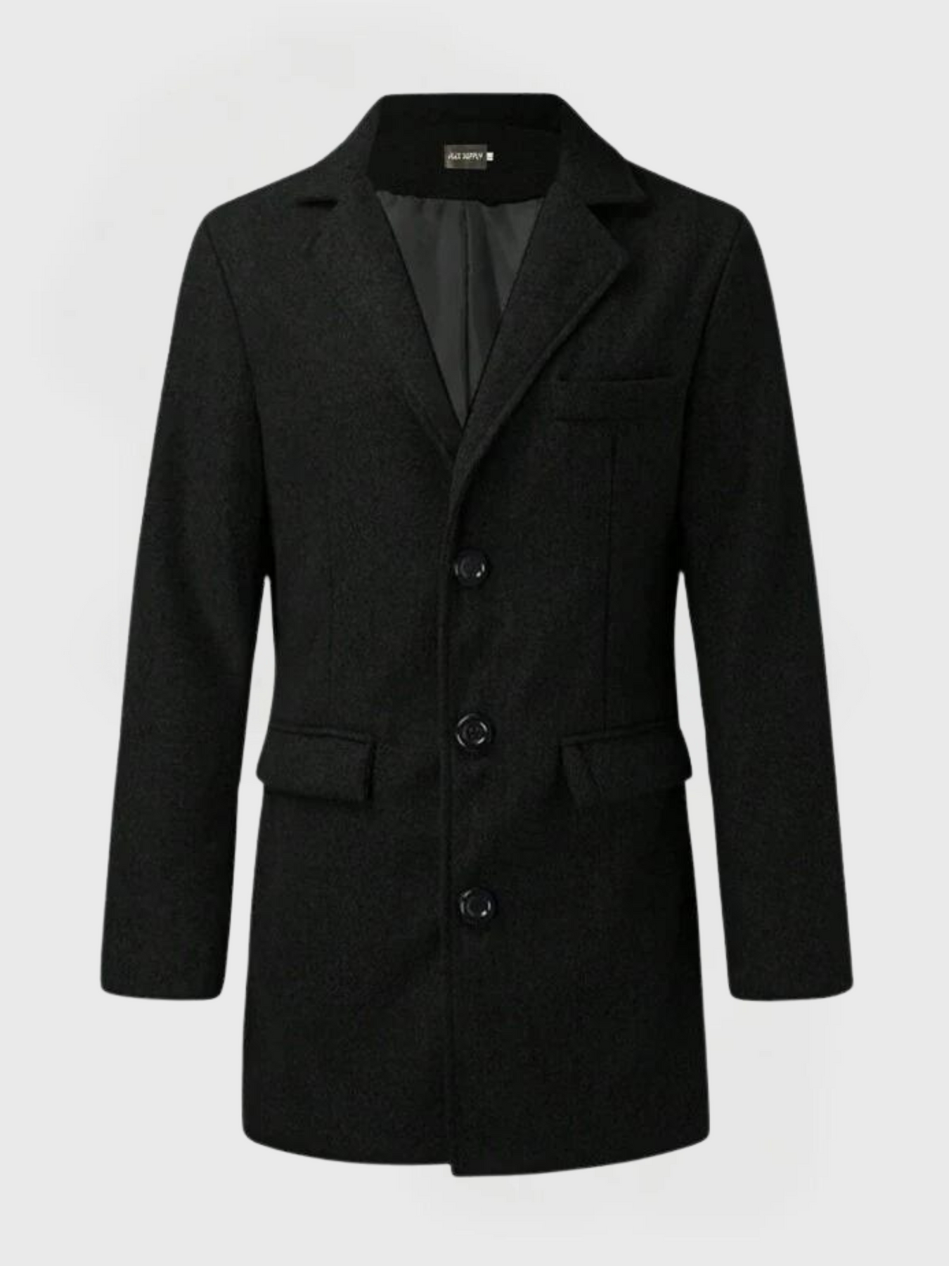 • Klassisches Design: Der Reverskragen und die Knopfreihe betonen den traditionellen Stil des Mantels.
