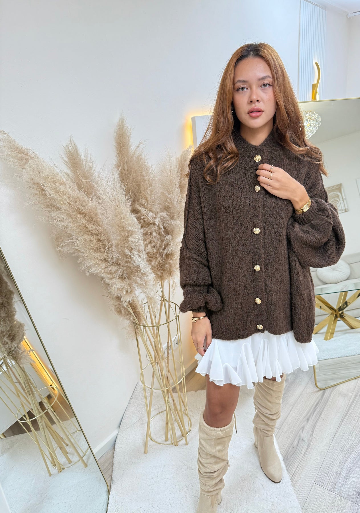 Nutze den Rüschenrock als zentrales Element eines Layering-Outfits – kombiniere ihn mit einem leichten Cardigan oder einer schicken Strickjacke. -