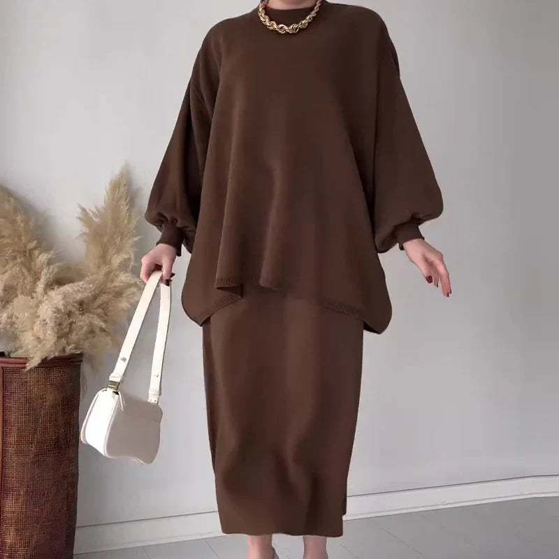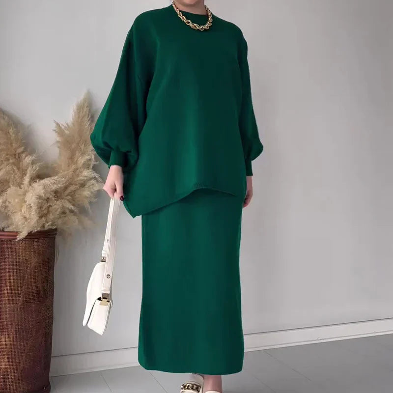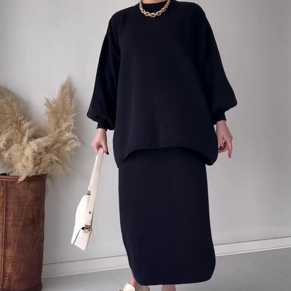 • Design: Zweiteiliges Set mit langem Rock und langärmeligem Oberteil