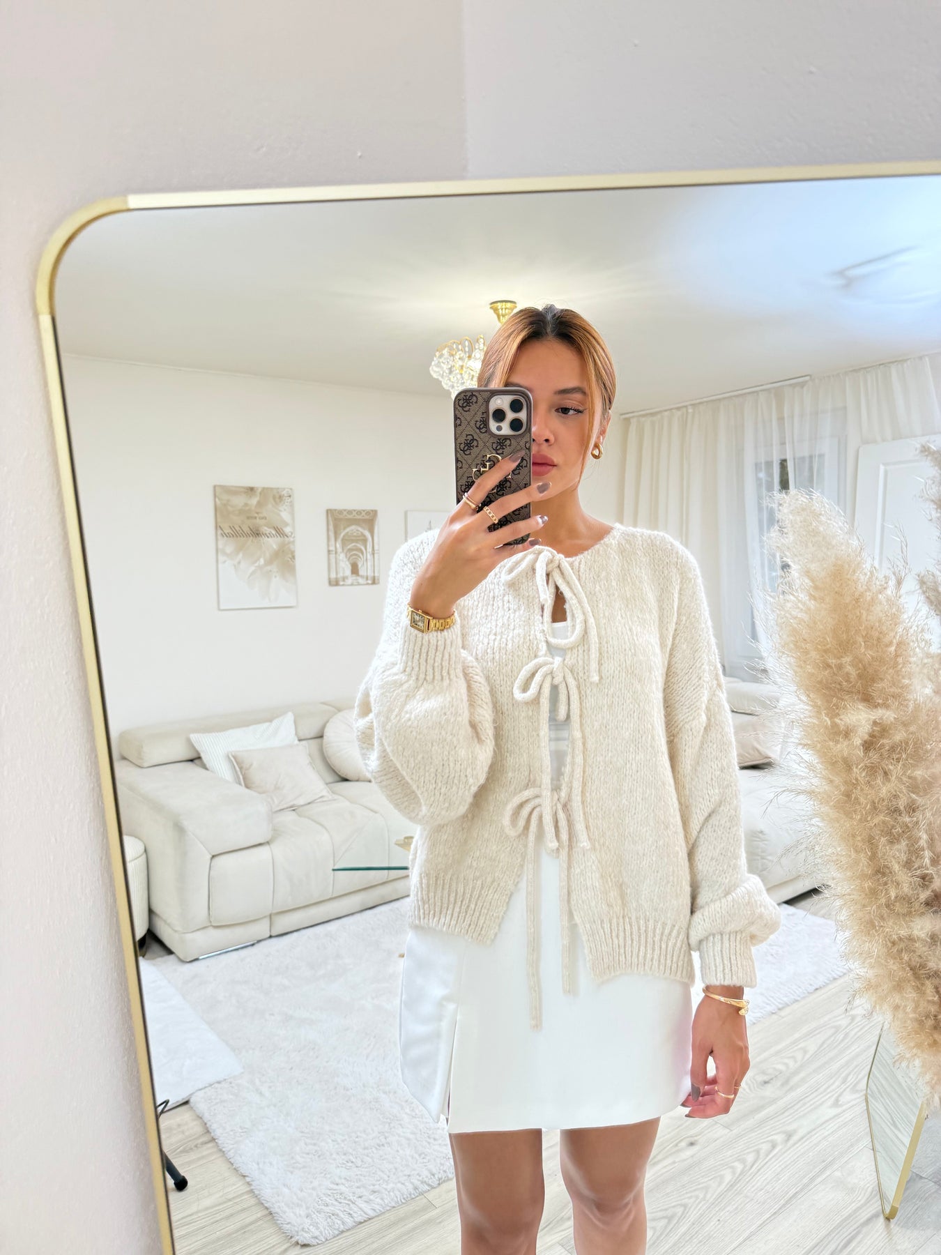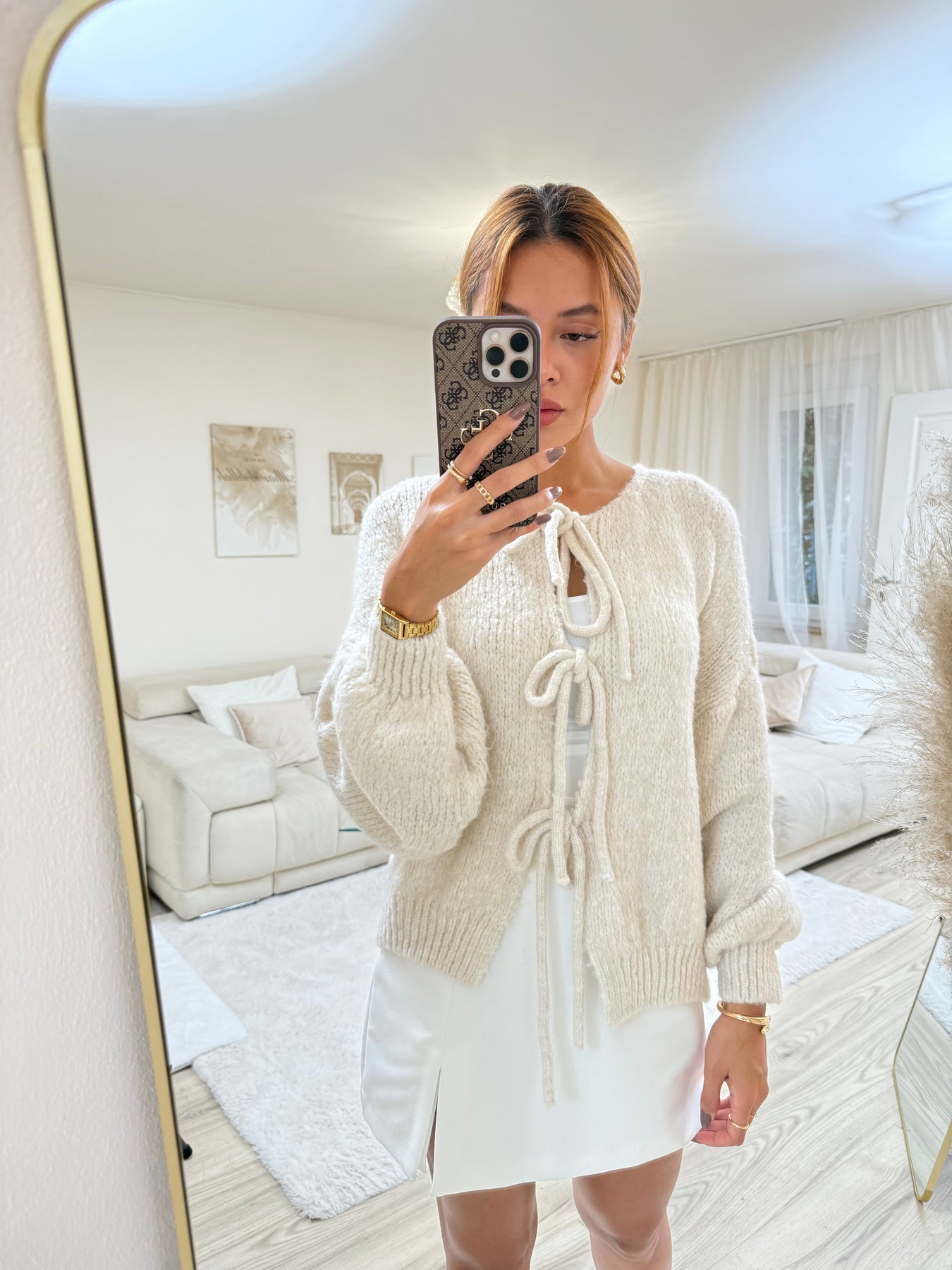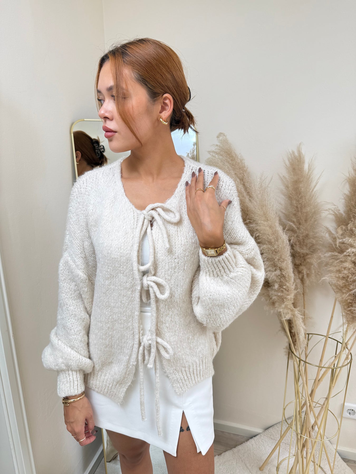 „Ich liebe diesen Cardigan! Er ist unglaublich weich, super bequem und die Schleifen verleihen ihm einen verspielten, eleganten Look. Ich trage ihn jeden Tag – ein absolutes Must-Have in meiner Garderobe!”