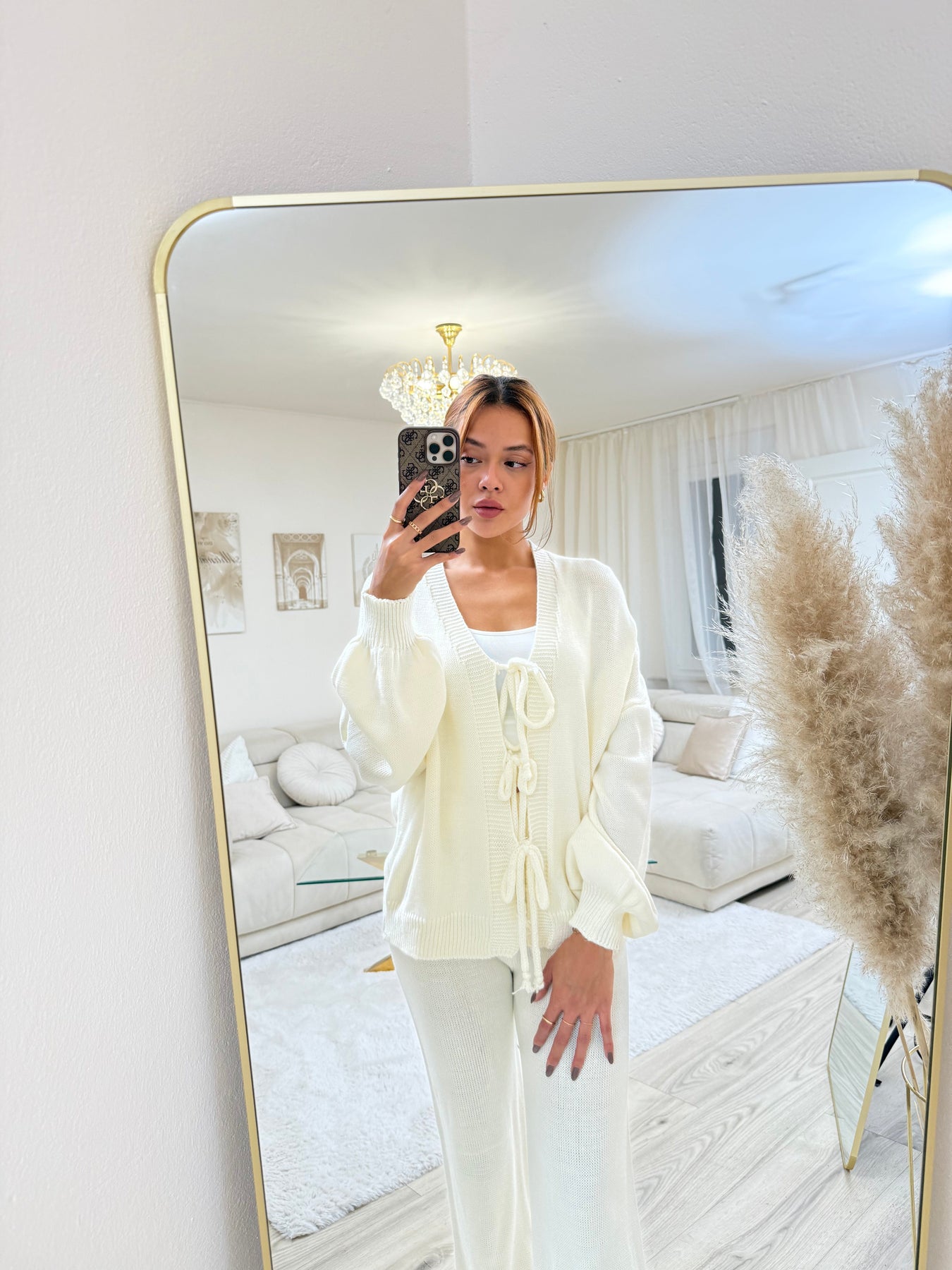 Schleifen Set und Gemütliches Wohlfühl-Set – Dein Kuscheliger 2 teiliger Cardigan und Hose im Cosy-Look