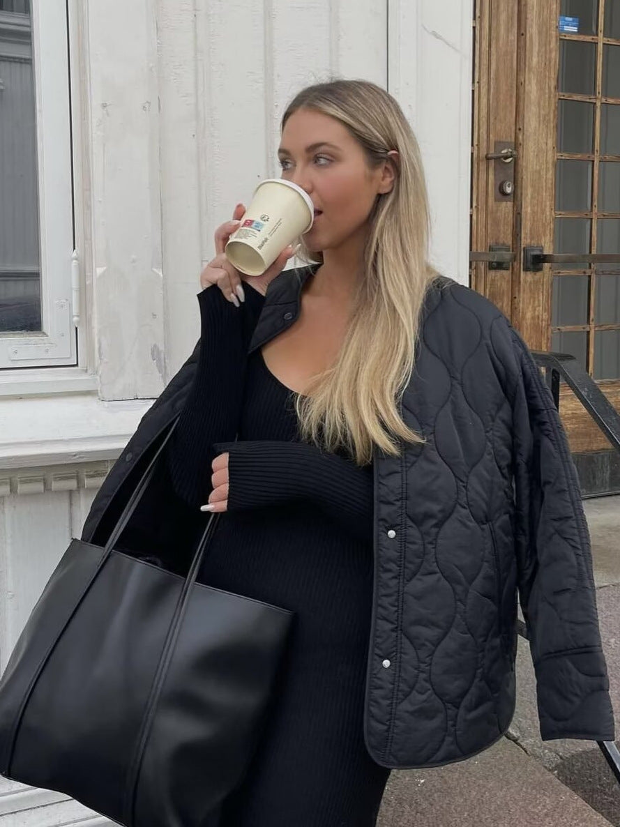 Diese gesteppte baumwolljacke verkörpert minimalismus und komfort in perfekter balance. das weiche material mit eleganter wellensteppung sorgt für eine angenehme wärme, während der runde ausschnitt und die gerade passform einen modernen, cleanen look schaffen. ideal für jeden tag – leicht, stilvoll und mühelos kombinierbar.