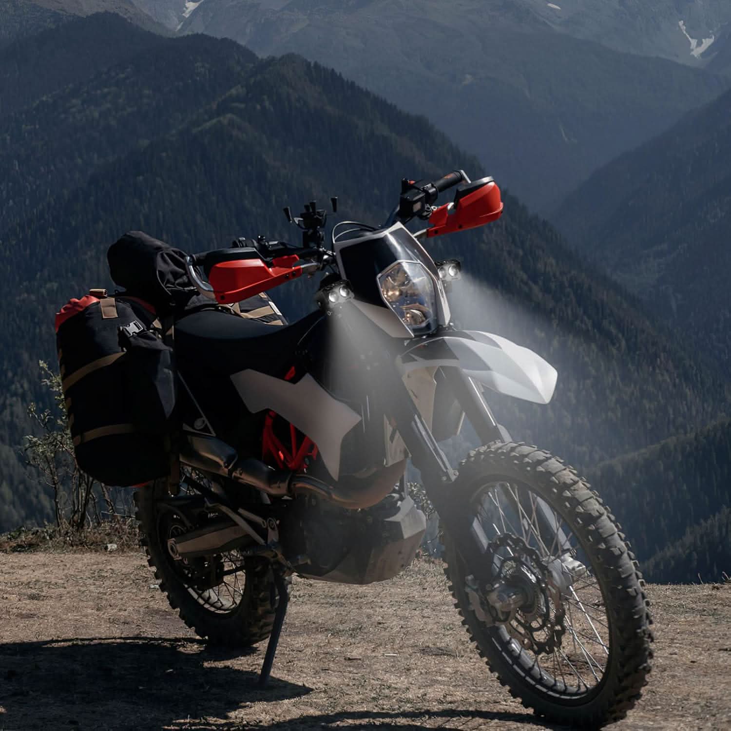 Der Doppelscheinwerfer dieses Motorradlichts verwendet LED-Perlen mit hoher Lichtdurchlässigkeit und großer Reichweite, kann die gesamte Straße ausleuchten, bietet hohe Helligkeit und starke Durchdringungskraft.