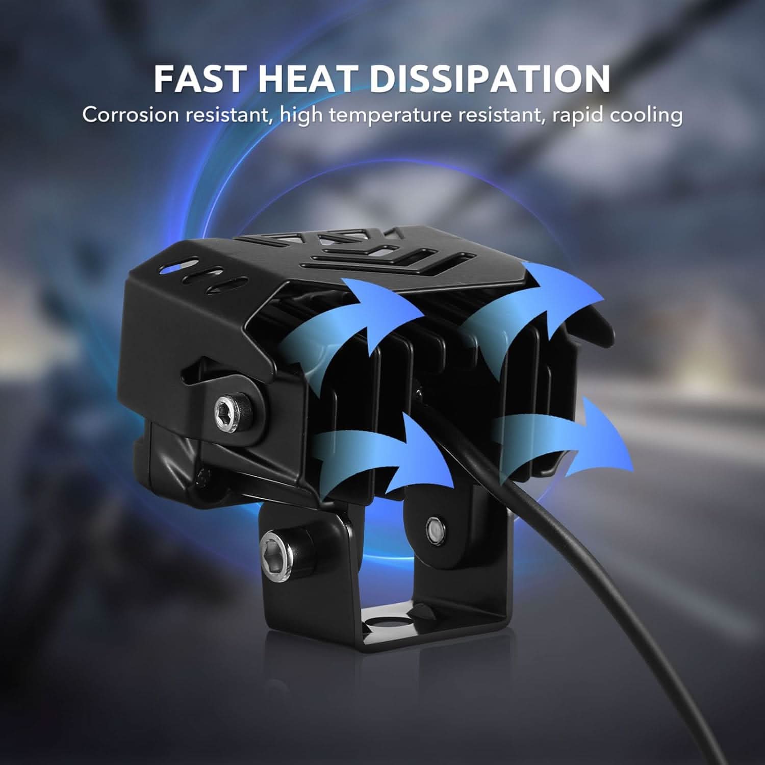 Ausgestattet mit gelbem Abblendlicht und weißem Fernlicht, 3 schaltbare Lichtmodi, geeignet für Regen-, Nebel- oder normales Wetter.