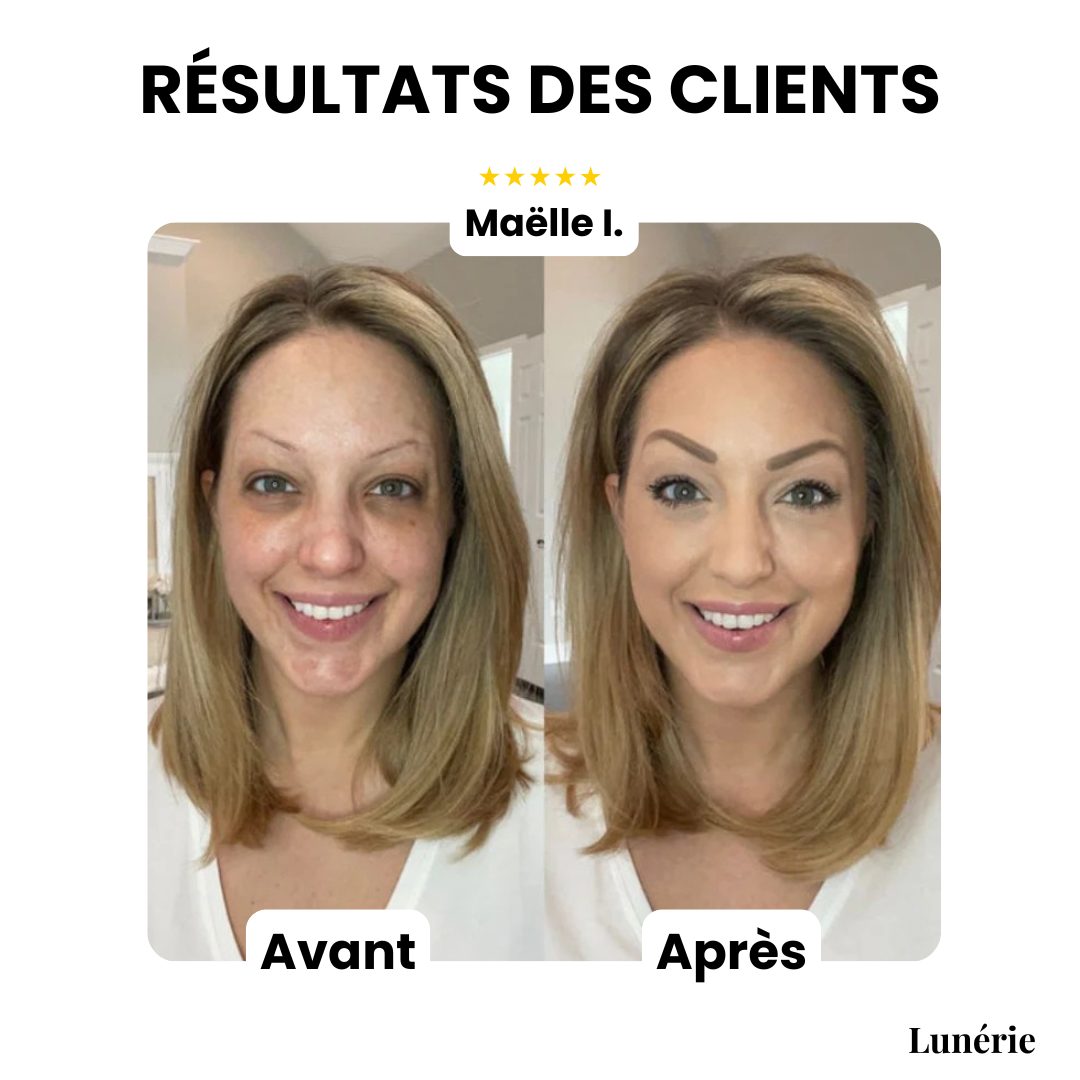 Korrigiert Rötungen, Unreinheiten und Flecken für ein glattes und gleichmäßiges Finish.