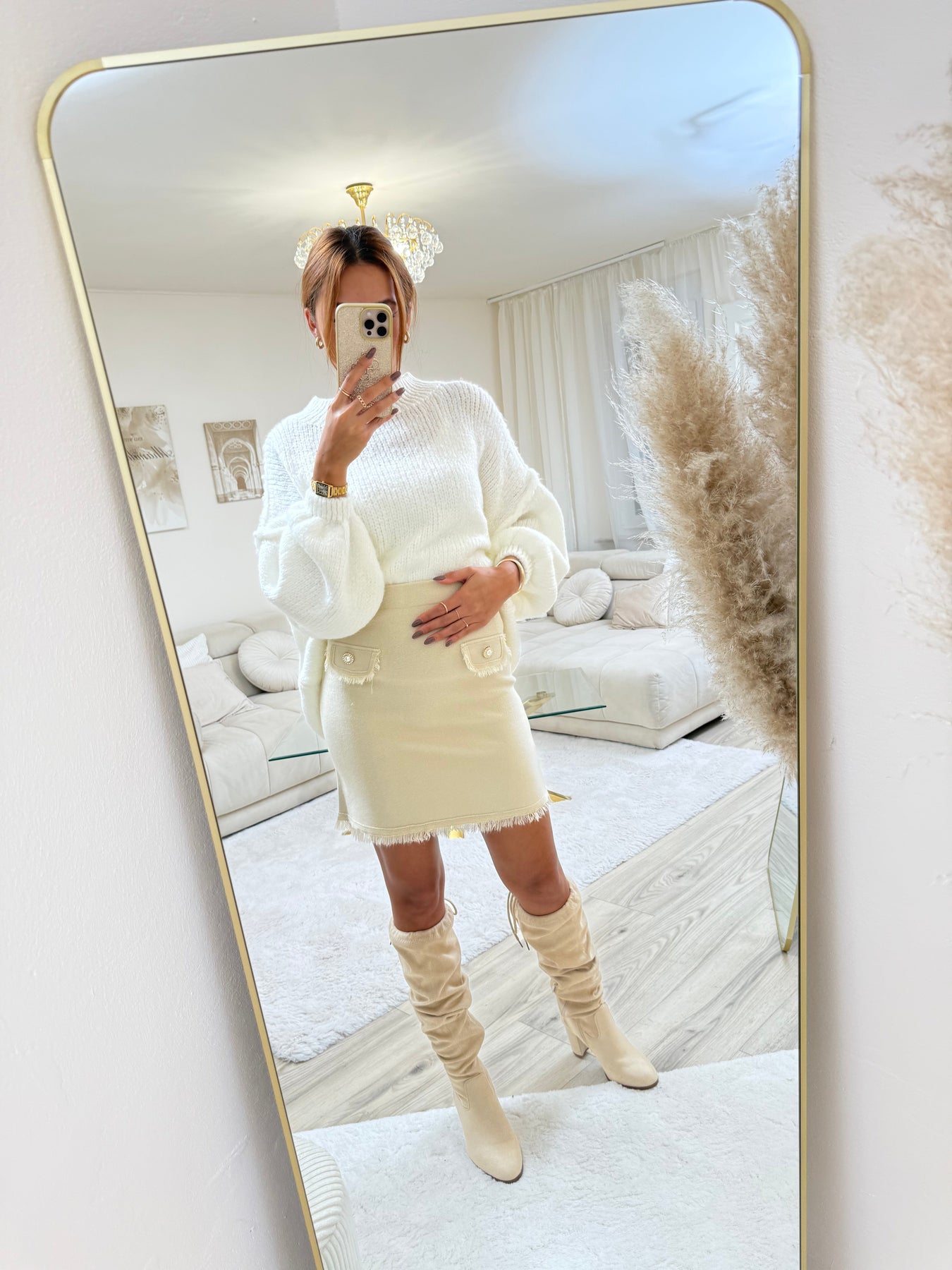 „Dieser Strickrock hat meine Wintergarderobe komplett verändert. Er ist stilvoll, bequem und ein echtes Wohlfühl-Piece – ein Highlight in meinem Kleiderschrank. – Viki A.“