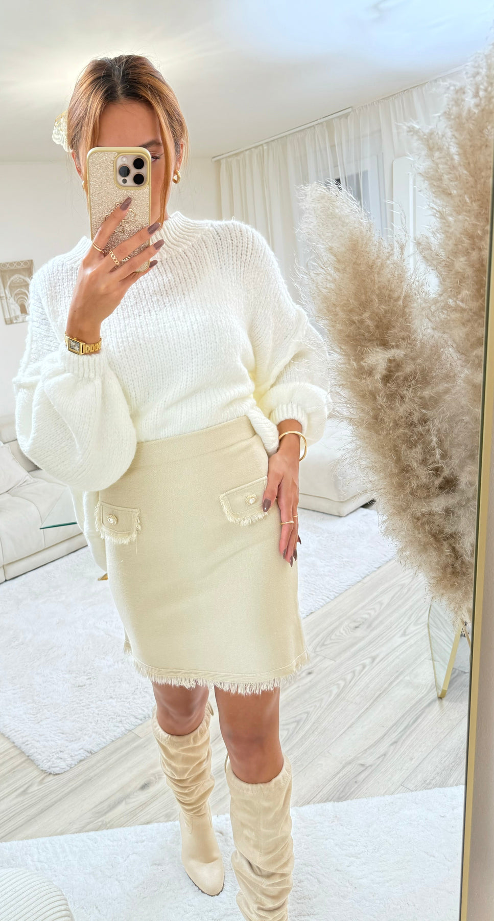 Tauche ein in die Welt unseres Strickrocks und erfahre, wie dieses Wohlfühl-Piece deinen Winterlook revolutioniert und dir unvergessliche Komfortmomente schenkt!