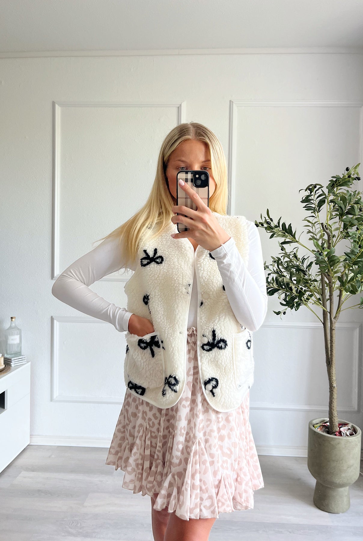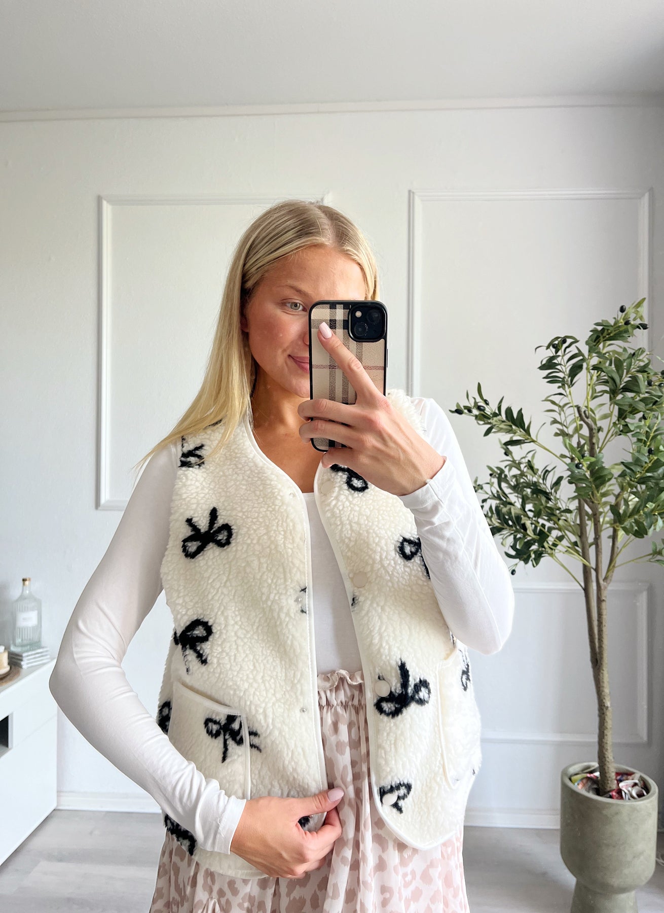 Superwarme Teddyfell-Weste für den Alltag im Schleifen-Print.