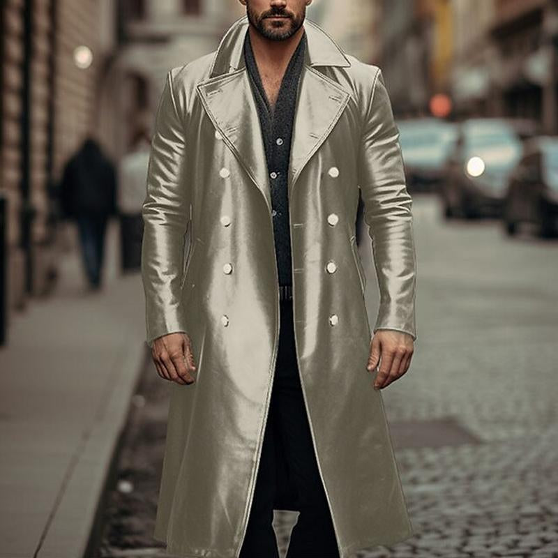 Treten Sie selbstbewusst auf mit diesem Vintage-Mantel für Herren. Die langen Ärmel, das mittellange Design und der klassische Reverskragen machen ihn perfekt, um jedem Outfit einen raffinierten Touch zu verleihen. Ob schick oder leger – dieser Mantel vereint zeitlosen Charme mit Alltagstauglichkeit für jede Gelegenheit.
