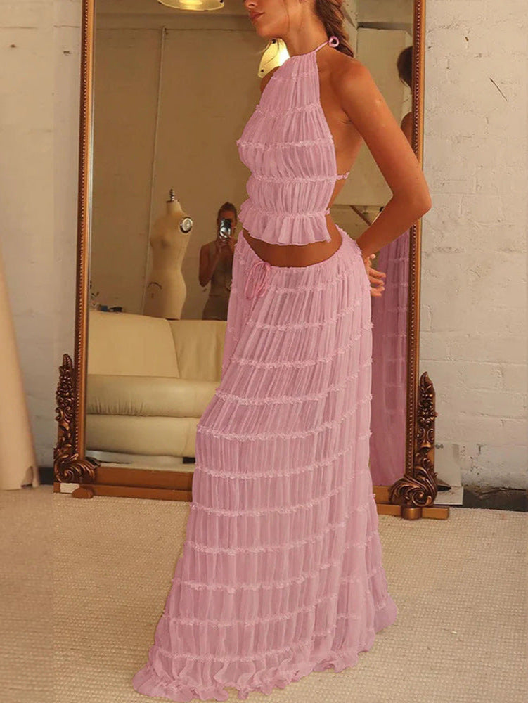 Adoptiere mühelose eleganz mit dem boho-volant-ensemble yuna, einem wunderschön gestalteten zweiteiligen outfit für sonnige ausflüge und lässige raffinesse. mit zarten volants und einer fließenden silhouette strahlt dieses ensemble charmante leichtigkeit und eleganz aus. ob auf entdeckungstour an neuen orten oder bei warmen sommerabenden – mit diesem Set bleibst du ganz einfach stilvoll.
