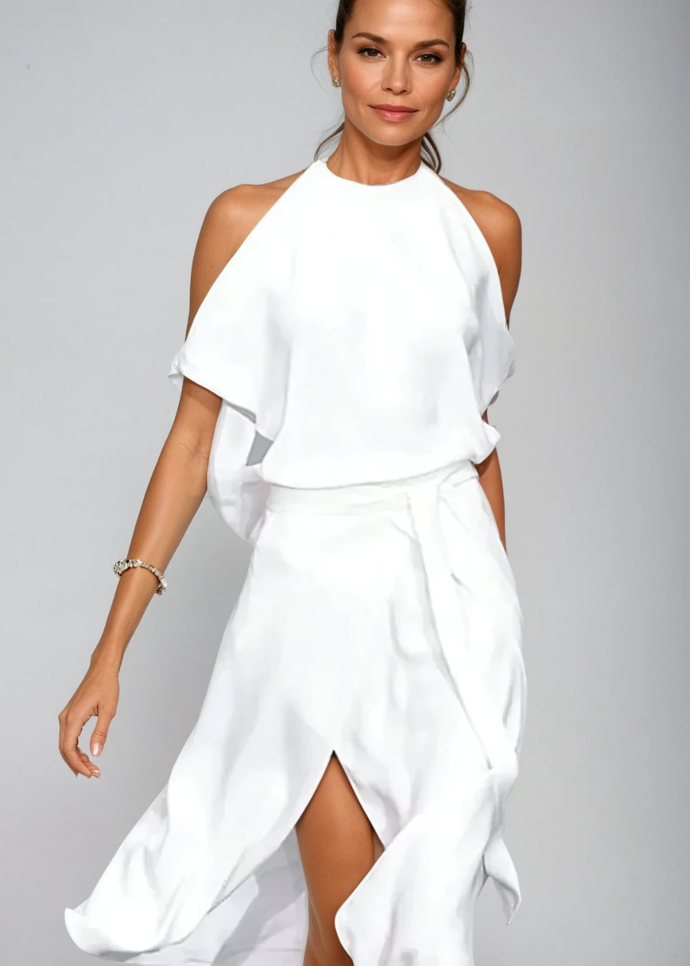 Mühelos schick: Mit einem schmeichelhaften Neckholder-Ausschnitt und einer sanft geschnürten Taille passt das Zeny-Kleid zu allen Körperformen.