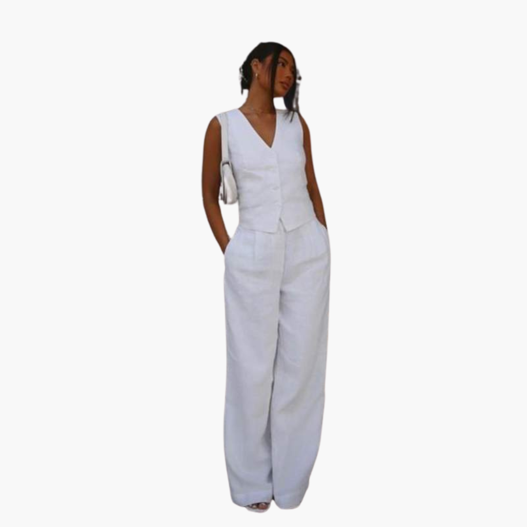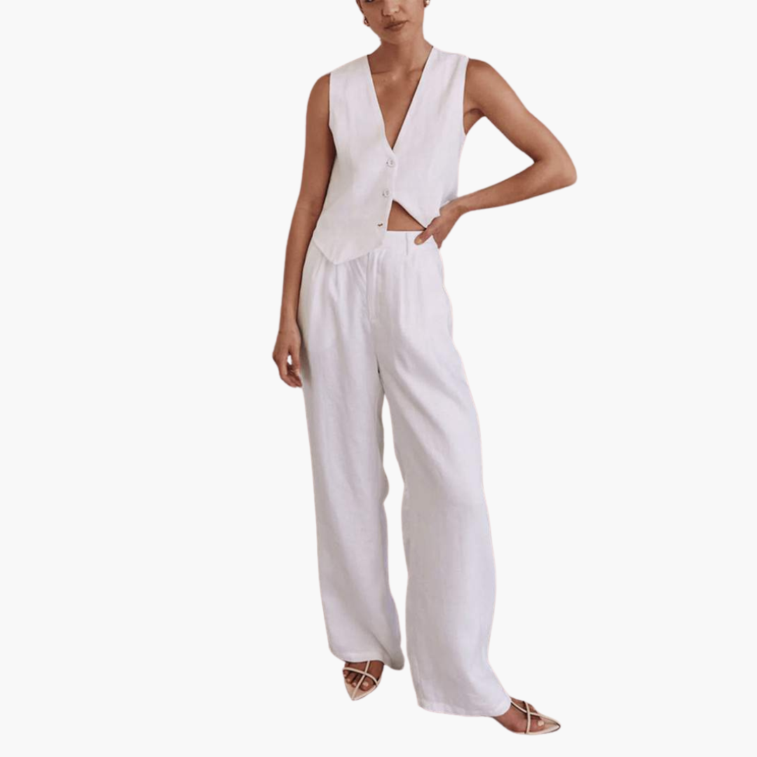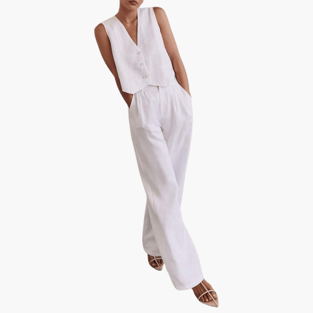 Zweiteiler mit V-Ausschnitt leinen - Damen Sommer Zweiteiler